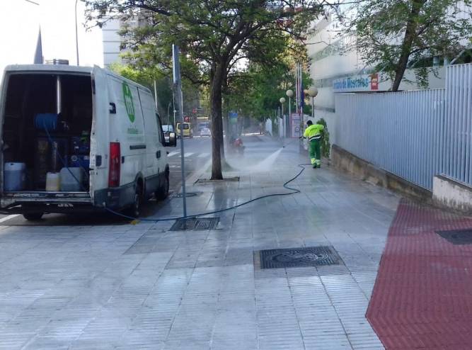 Imagen en alta resolución. Este enlace se abrirá mediante lightbox, puede haber un cambio de contextoDesde el pasado 13 de marzo, Móstoles reforzó las labores de limpieza y desinfección especial de los centros educativos cerrados y de las dependencias municipales. Así mismo intensificó las labores de limpieza y desinfección de las vías públicas, aceras, mobiliario urbano y puntos considerados críticos como los accesos a los hospitales o centros de salud. En algunas de las labores de limpieza y desinfección han colaborado también el servicio de Bomberos del Ayuntamiento de Móstoles, la Comunidad de Madrid y la UME.