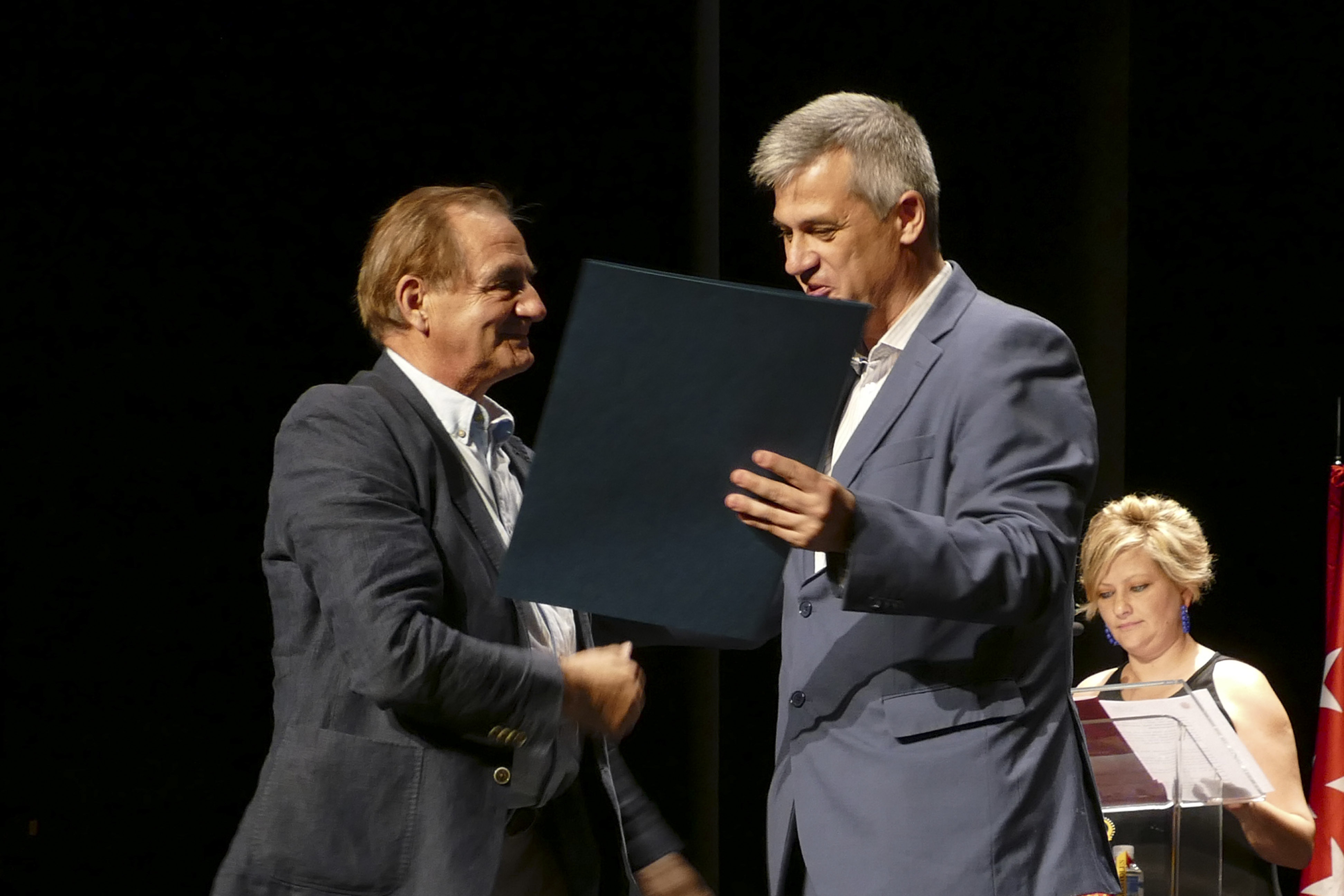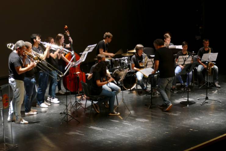 El acto ha finalizado con una representación teatral del IES Rayuela denominada `2 al cubo´, cuyo autor y uno de sus actores es el Jefe de Estudios del propio centro, Jaime Álvarez y el otro actor, Yerai Fernández, es alumno. A continuación se ha procedido a la entrega de distinciones a los docentes homenajeados y el broche de oro lo ha puesto la Big Band, formada por los alumnos del Conservatorio Rodolfo Halffter que ha puesto el toque musical a a este homenaje a los profesores que durante tanto tiempo han enseñado a los niños, niñas y jóvenes de Móstoles.
