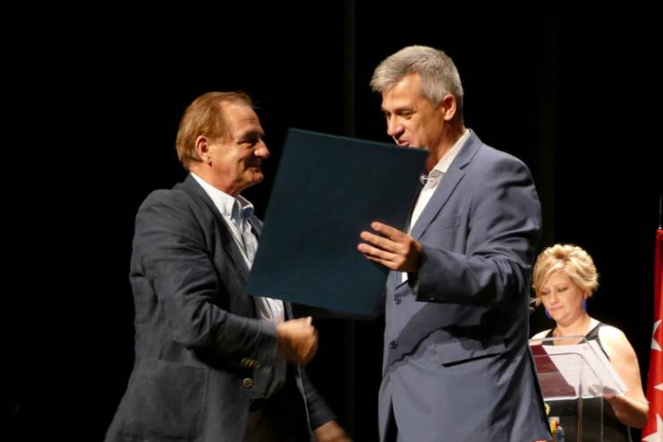 Imagen en alta resolución. Este enlace se abrirá mediante lightbox, puede haber un cambio de contextoEl alcalde de Móstoles, David Lucas, acompañado por la concejala de Educación, Isabel Cruceta, la concejala de Desarrollo Económico, Empleo y Nuevas Tecnologías, Jessica Antolín, el concejal de Cultura y Bienestar Social, Gabriel Ortega, y el de Medio Ambiente, Parques y Jardines y Limpieza Viaria, Miguel Ángel Ortega, ha asistido este medio día, en el Teatro del Bosque, al acto anual de homenaje a los docentes que se han jubilado en este curso escolar recién finalizado.