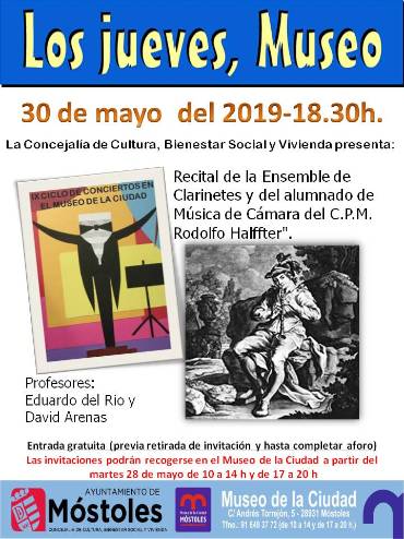 Imagen en alta resolución. Este enlace se abrirá mediante lightbox, puede haber un cambio de contextoEl Museo de la Ciudad acoge el jueves 30 de mayo, a partir de las 18.30 horas, un Recital de la Ensemble de Clarinetes y de alumnos de Música de Cámara del Conservatorio Rodolfo Halffter de Móstoles.