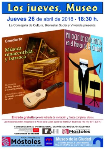 Imagen en alta resolución. Este enlace se abrirá mediante lightbox, puede haber un cambio de contextoEl Museo de la Ciudad organizará el jueves día 26 de abril, a las 18.30 horas, un concierto de "Música renacentista y barroca".