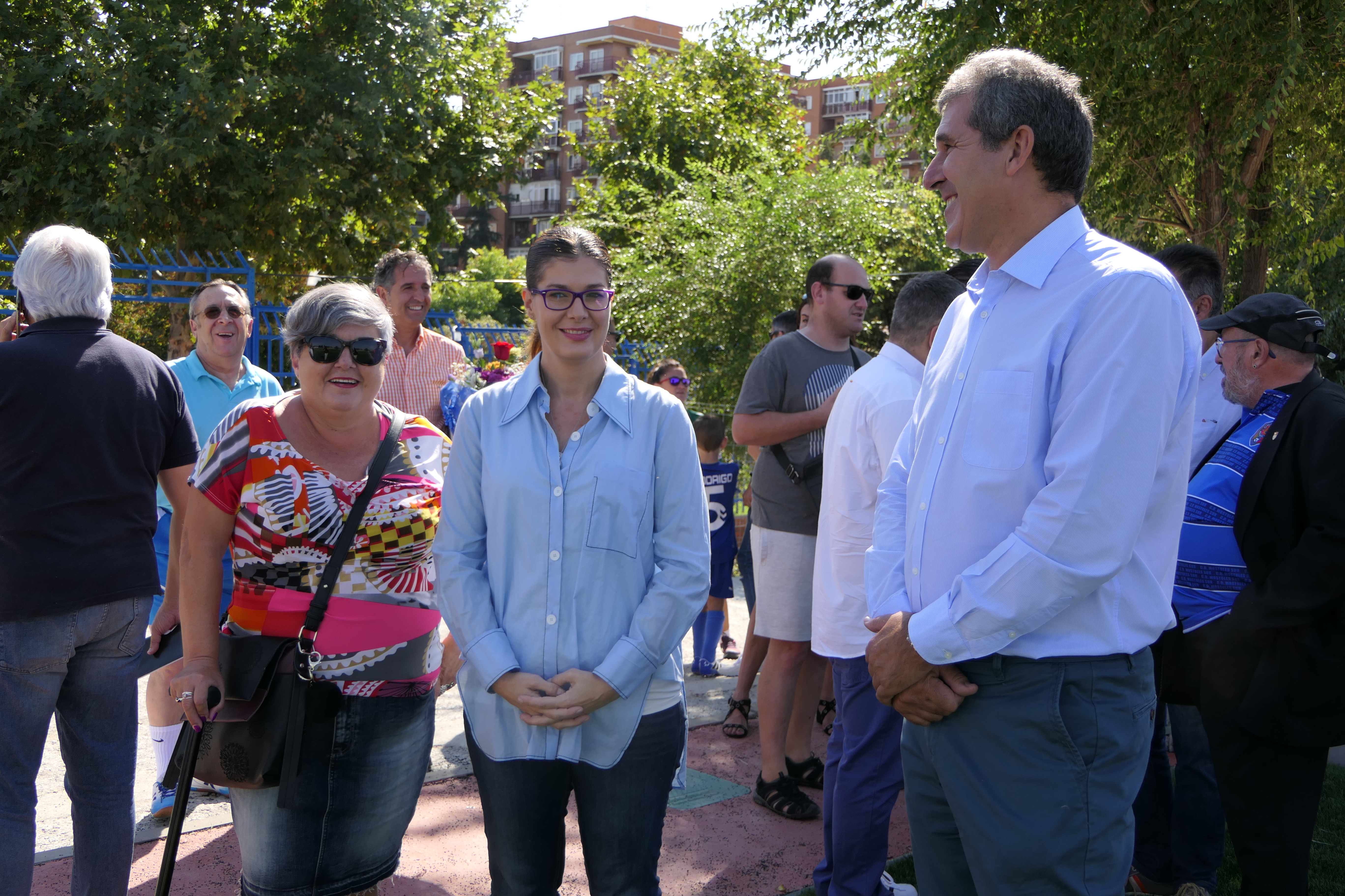 Imagen en alta resolución. Este enlace se abrirá mediante lightbox, puede haber un cambio de contextoCon motivo de la disputa del primer partido oficial en el renovado césped artificial del Campo Municipal de Fútbol Andrés Torrejón, la alcaldesa de Móstoles, Noelia Posse, realizó esta mañana el saque de honor del encuentro organizado entre el Móstoles CF y AD Arganda. En la ceremonia también estuvieron presentes el concejal de Deportes, Obras, Infraestructuras y Mantenimiento de Vías Públicas, Agustín Martín, la concejala de Patrimonio, Beatriz Benavides, el presidente del Móstoles CF, Antonio del Cerro Martin, miembros de su junta directiva, y aficionados en general.