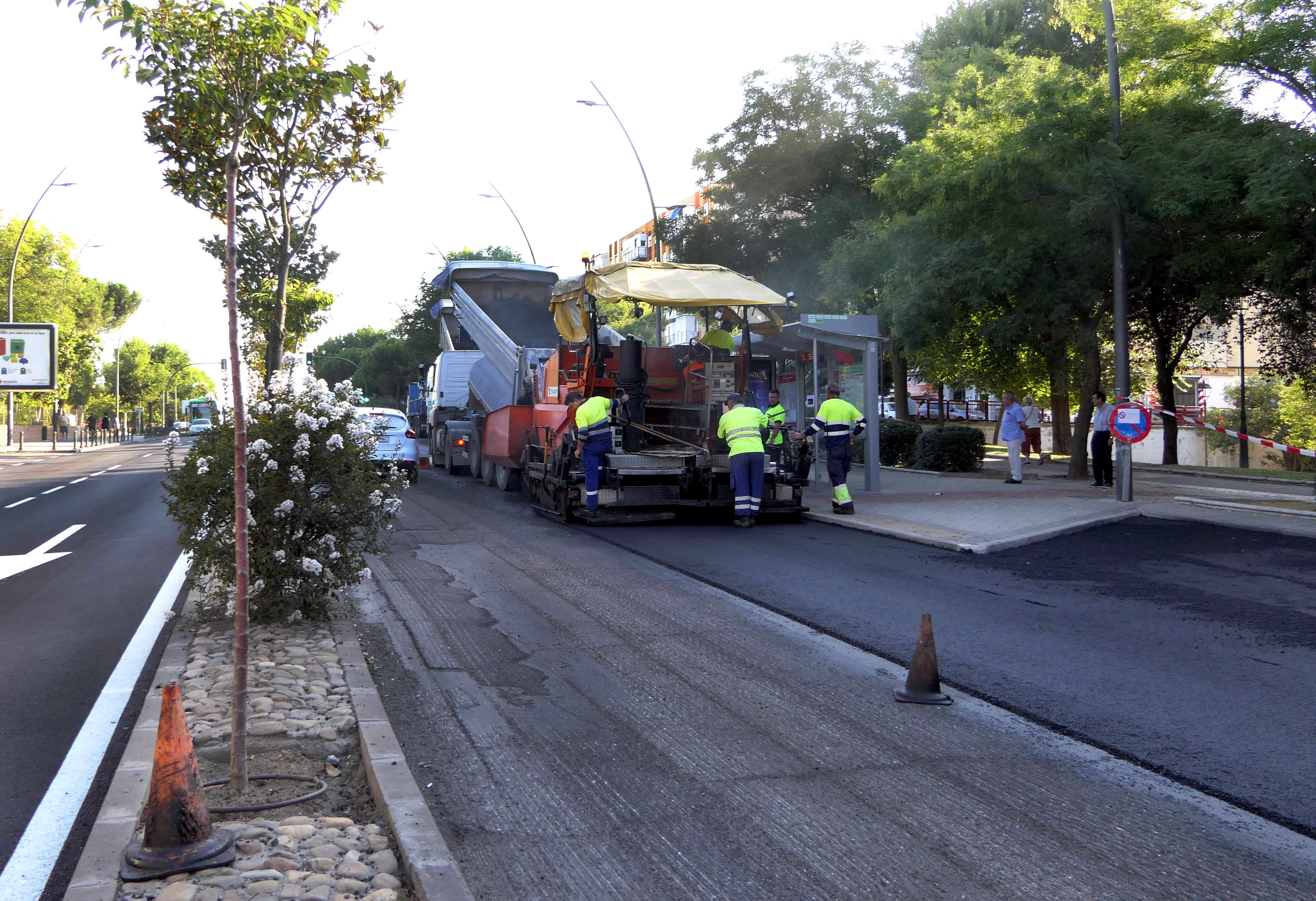 Imagen en alta resolución. Este enlace se abrirá mediante lightbox, puede haber un cambio de contextoLa alcaldesa de Móstoles, Noelia Posse y el concejal de Deportes, Obras, Infraestructuras y Mantenimiento de Vías Públicas. Agustín Martín, han visitado esta mañana las obras de asfaltado que se están llevando a cabo en la Avenida de Portugal (tramo comprendido desde Avenida Alcalde de Móstoles hasta la Avenida de la Constitución), incluidas en la Operación Asfalto 2018. La superficie a asfaltar en esta zona asciende a 7.904 metros cuadrados. Está previsto que en el día de hoy quede finalizado el trabajo de aglomerado y en los próximos días se procederá al pintado del firme. Para mañana 21 de septiembre se realizará el fresado en la calle Tulipán (entre las calles Orquidea y Gardenia) y el aglomerado en la calle Juan XXIII (entre la Avenida del dos de Mayo y la calle Tokio).
