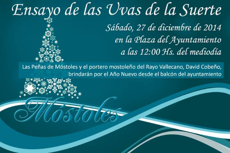 Una de las principales novedades de las Fiestas Navideñas de este año será la iniciativa que llevarán a cabo la Federación de Peñas de Móstoles el próximo 27 de diciembre las 12.00 horas en la Plaza España con el ensayo de las uvas de la suerte.