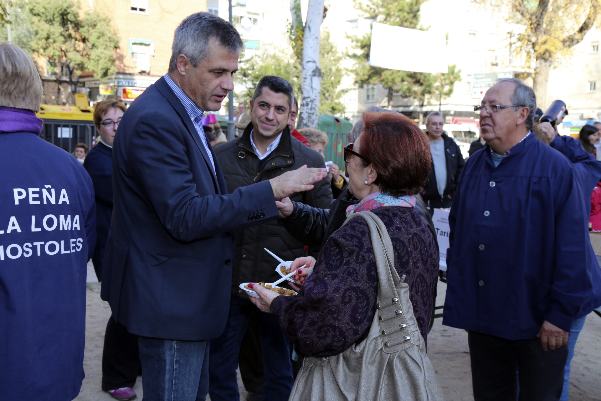 La peña La Loma ofreció el pasado domingo su tradicional degustación de migas para sus socios y vecinos. Entre los mostoleños que acudieron a degustarlas estuvieron el Alcalde, David Lucas y el Concejal de Presidencia, Seguridad Ciudadana y Movilidad, Roberto Sánchez, junto con la presidenta de la peña, Teresa Moreno y sus más de 150 socios. Durante toda la mañana tres macrorrecipientes de migas para invitar a peñeros y demás vecinos a base de unas 200 barras de pan, ocho kilos de ajo, panceta y chorizo y 10 litros de aceite. La degustación se realizó en el parque de la calle Barcelona.
