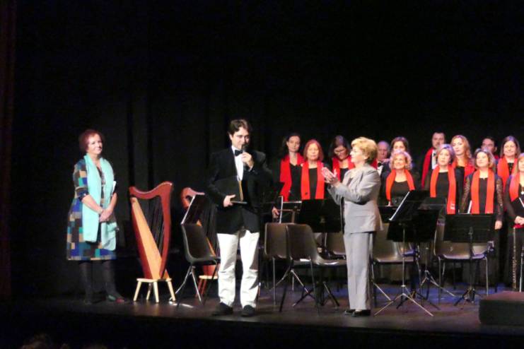 El concierto fue presentado por Josefina Uría, que invitó a subir al escenario a la concejala y al director de la Coral. A propuesta de Ana María Rodrigo se guardó un minuto de silencio por la muerte de Laura Luengo, tras el cual todos los asistentes aplaudieron puestos de pie.