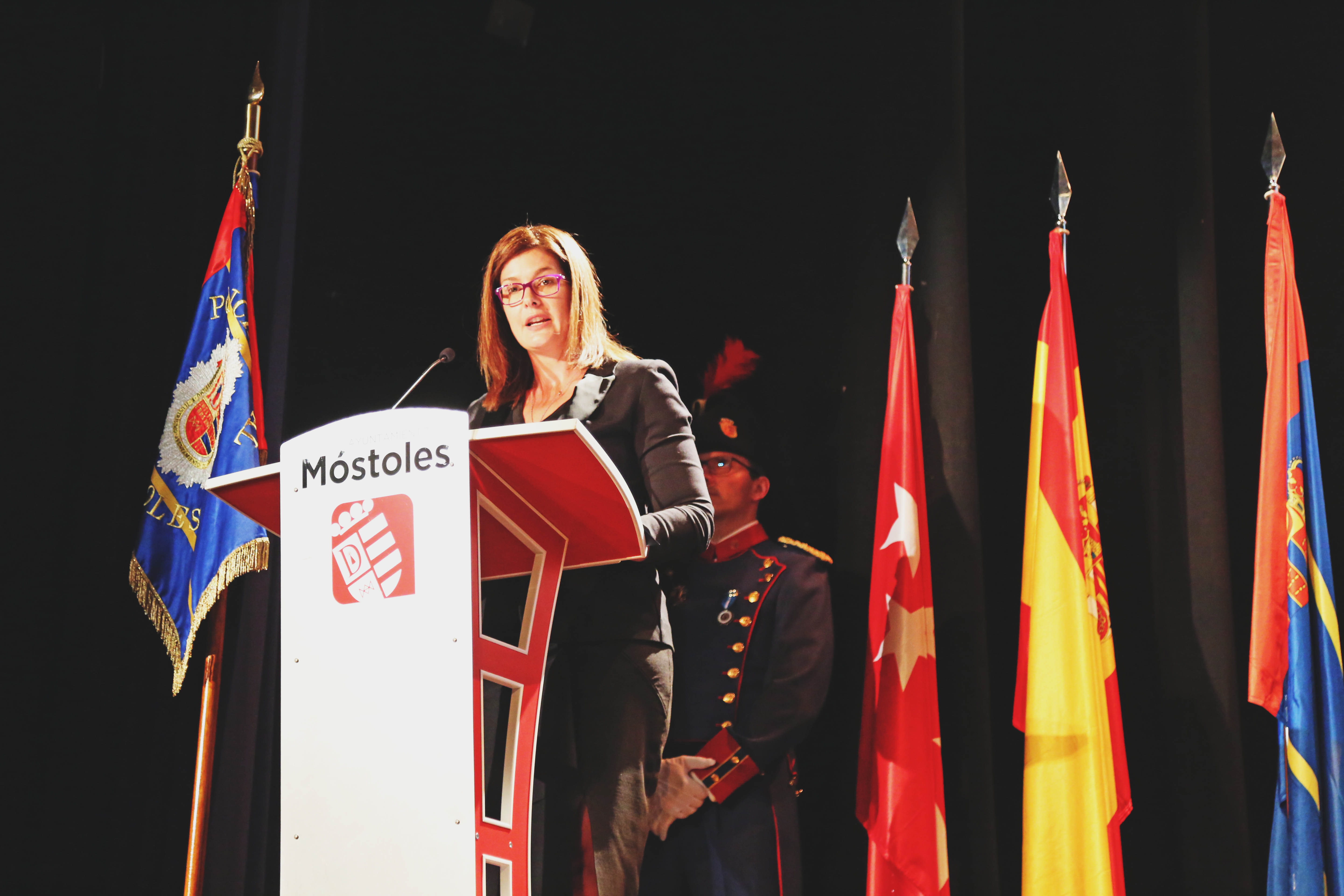 Imagen en alta resolución. Este enlace se abrirá mediante lightbox, puede haber un cambio de contextoLa alcaldesa de Móstoles, Noelia Posse, ha asistido esta mañana al acto institucional de celebración de la festividad del patrón de la Policía Municipal, San Juan Bautista, en el teatro del Centro Norte Universidad.