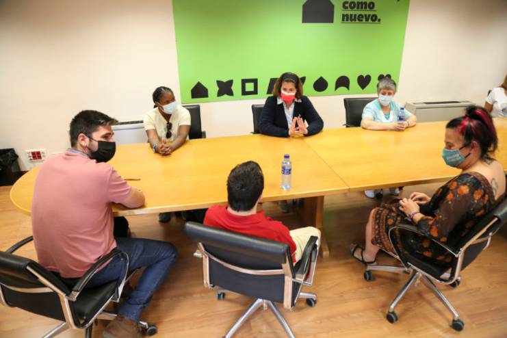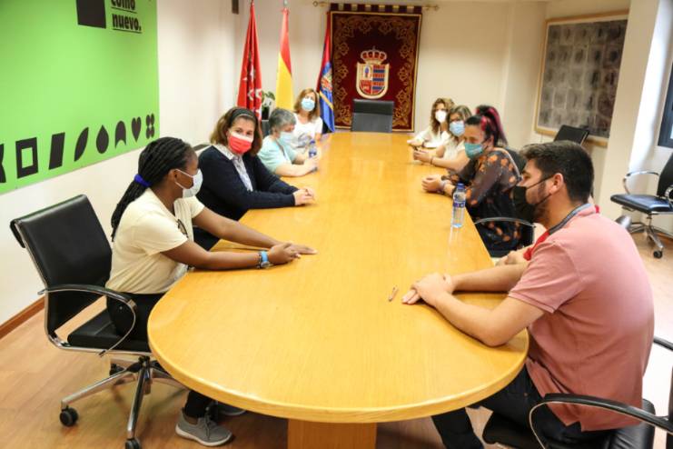 La Alcaldesa, Noelia Posse, acompañada por el Concejal de Seguridad, Convivencia, Cultura y Transición Ecológica, Alex Martín, y la Portavoz de Podemos, Mónica Monterreal, han recibido hoy a las representantes del Colectivo C4R, Alicia del Amo y María José Mayordomo, y a los miembros de la Fundación AMÁS, Ana María García Muñoz, Guillermo Hurtado y Ramona Bolopa (tres de las personas con discapacidad que han ayudado a elaborar el premio) y a la educadora Silvia Guerrero.