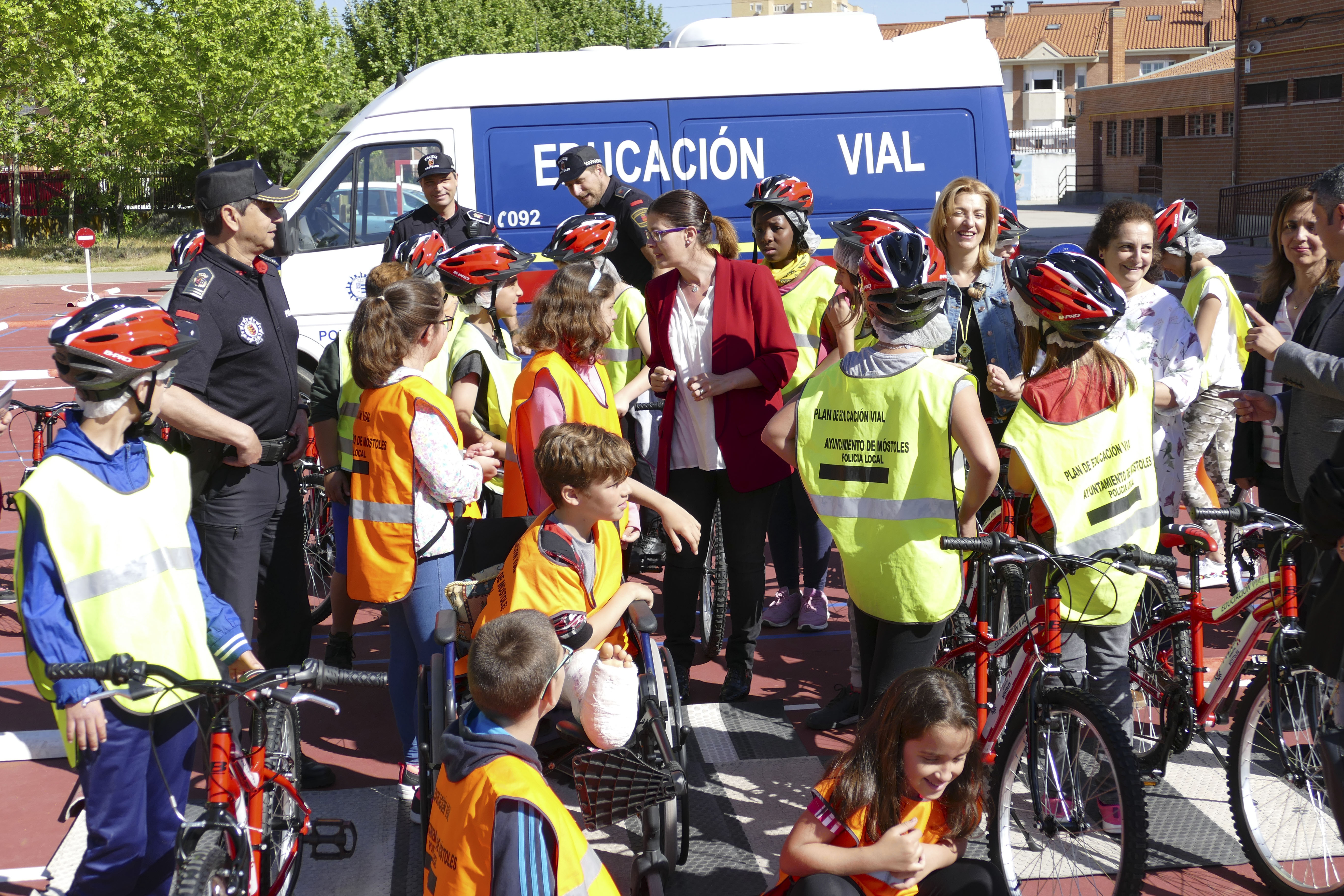 Imagen en alta resolución. Este enlace se abrirá mediante lightbox, puede haber un cambio de contextoLa Alcaldesa de Móstoles, Noelia Posse, acompañada por el Concejal de Presidencia, Seguridad Ciudadana y Comunicación, Roberto Sánchez, la concejala de Educación, Isabel Cruceta, y el Comisario Jefe de la Policía Municipal, Juan Manuel Arribas, ha presentado en el colegio María Montessori la renovación del Parque Infantil de Tráfico que utiliza la Policía Municipal de Móstoles en las clases prácticas de Educación Vial que se ofrecen a las alumnas y alumnos de quinto curso en el marco del Plan Anual de Educación Vial para Escolares.
