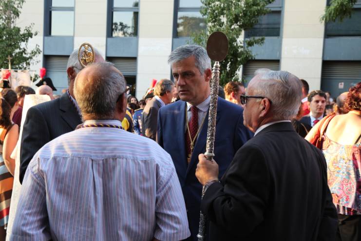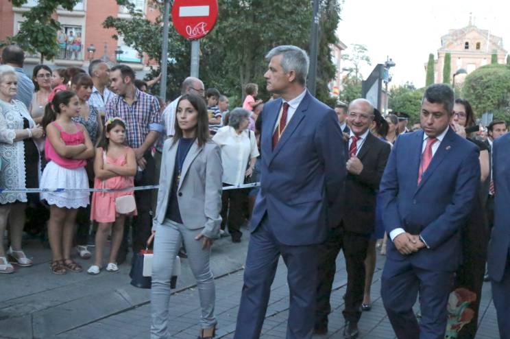 Imagen en alta resolución. Este enlace se abrirá mediante lightbox, puede haber un cambio de contextoLas hermandades, peñas y casas regionales de la ciudad han precedido a Nuestra Señora de los Santos y a San Simón de Rojas en el recorrido de esta tradicional procesión, que ha estado encabezada por el Alcalde de Móstoles, David Lucas, quien ha hecho entrega del bastón de mando a la Virgen.