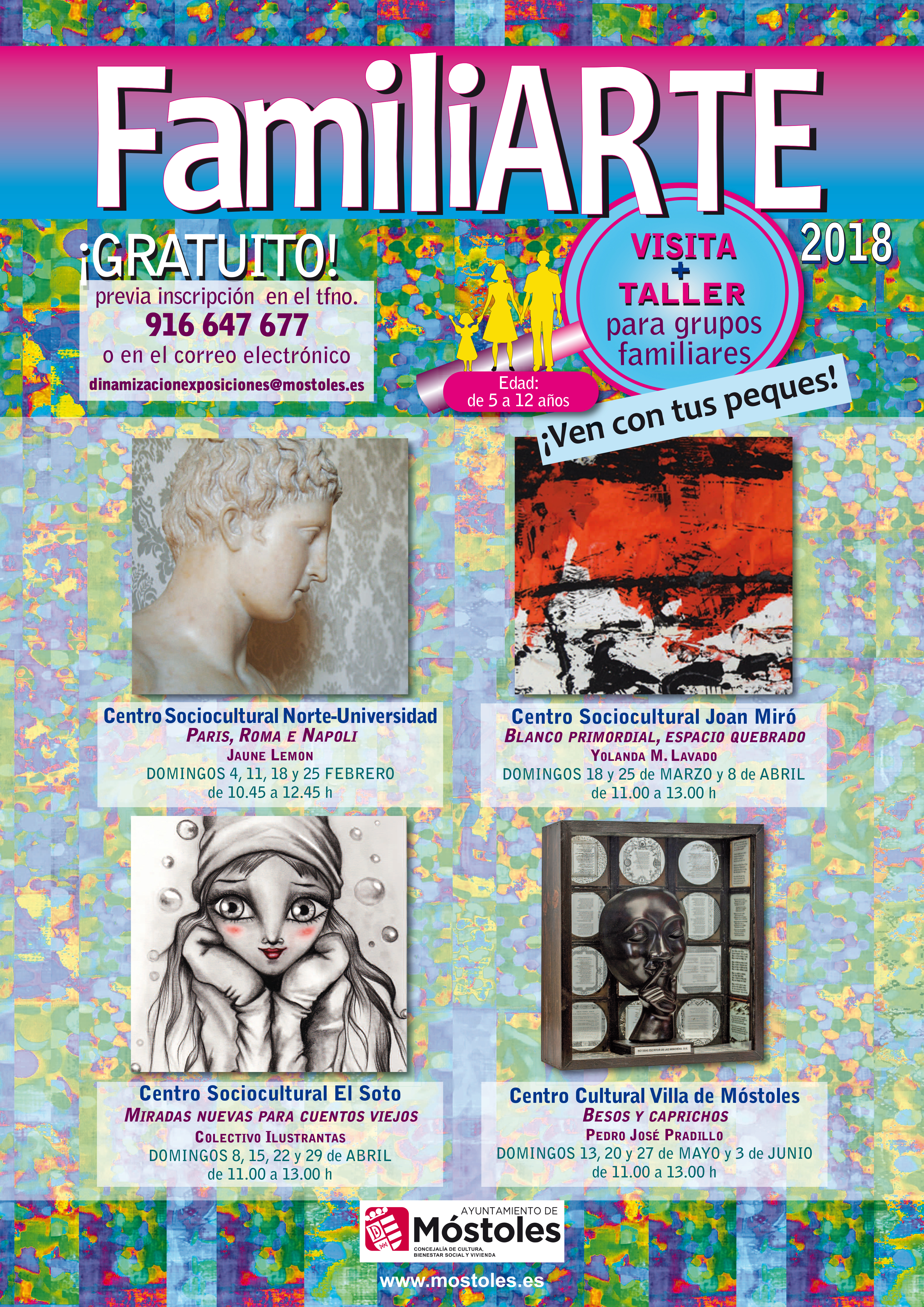 . - Se mantienen abiertas las inscripciones para FamiliARTE, llamando al tfno.: 916 647 677 o en el correo electrónico: dinamizacionexposiciones@mostoles.es