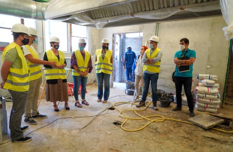 La Alcaldesa de Móstoles, Noelia Posse, acompañada por el Concejal de Mejora y Mantenimiento de los Espacios Públicos, David Muñoz, la Concejala de Presidencia, Rebeca Prieto, y la Presidenta de la Comisión Especial de Estudio y Dirección de la Estrategia de Salida de la Crisis provocada por el coronavirus y Portavoz de Podemos, Mónica Monterreal, ha visitado las obras de mejora y rehabilitación que se están llevando a cabo en el C.E.I.P. Benito Pérez Galdós.