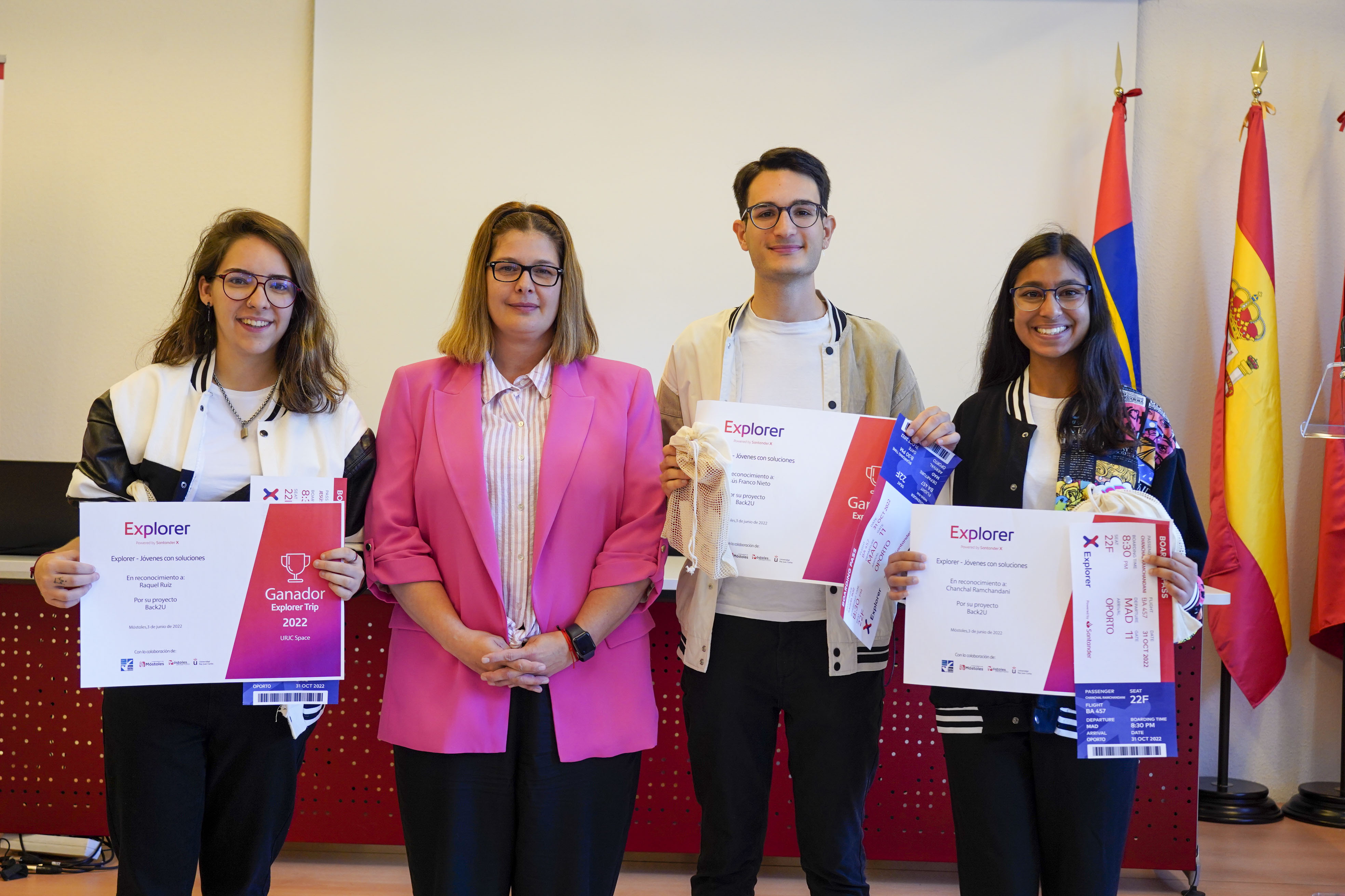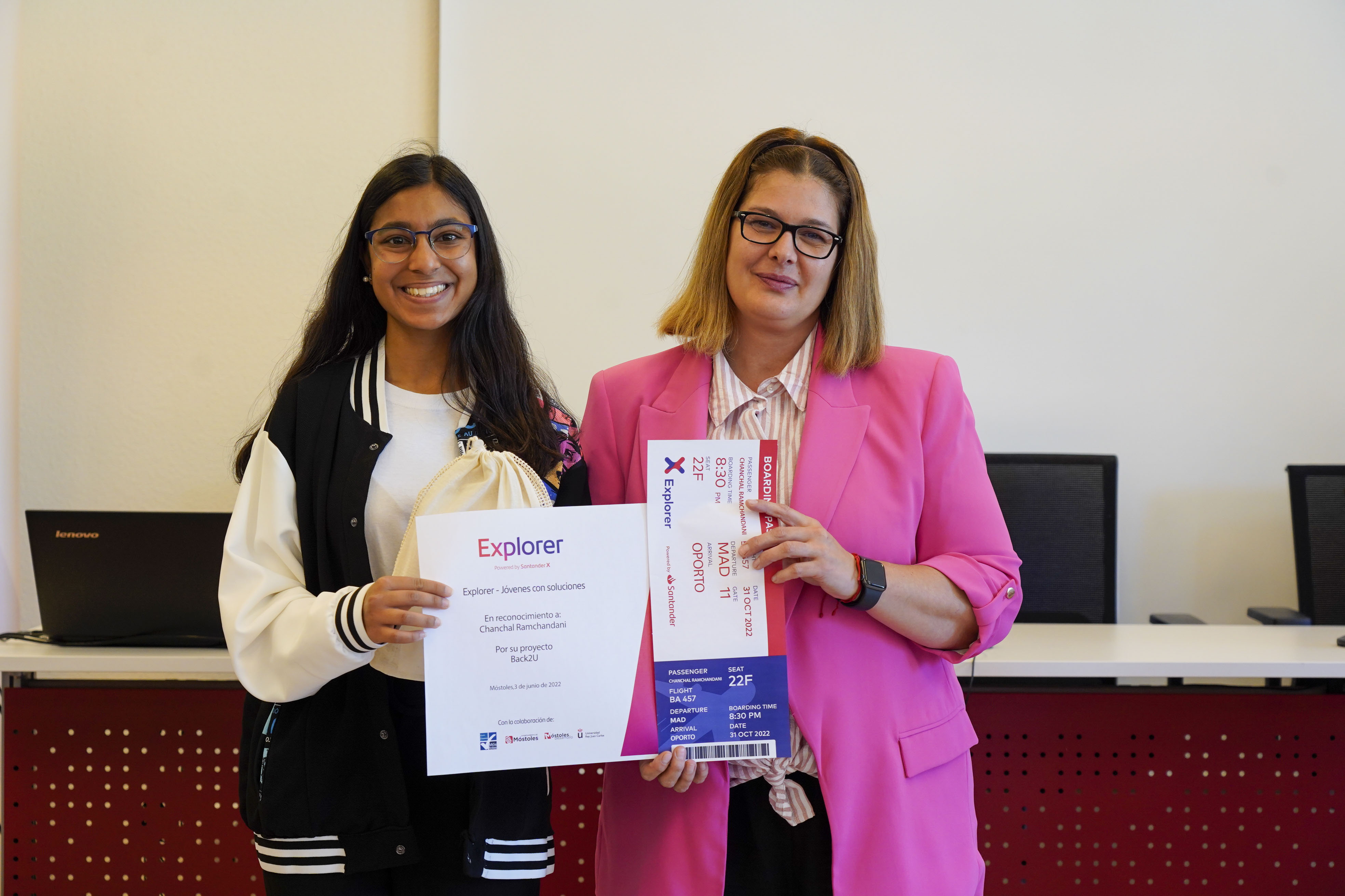 Entrega de premios Explorer URJC (2)Entrega de premios Explorer URJC (2)El proyecto Back2U, ha sido el ganador de la XV edición del programa Explorer URJC celebrado en Móstoles con el objetivo de fomentar el emprendimiento joven y apoyar la conversión de ideas en proyectos y soluciones empresariales. El segundo premio ha recaído en Seguros CAT y el tercero en Fash(Revolut)ion. El diploma a la mujer emprendedora ha sido para Silvia Di Bonaventura.