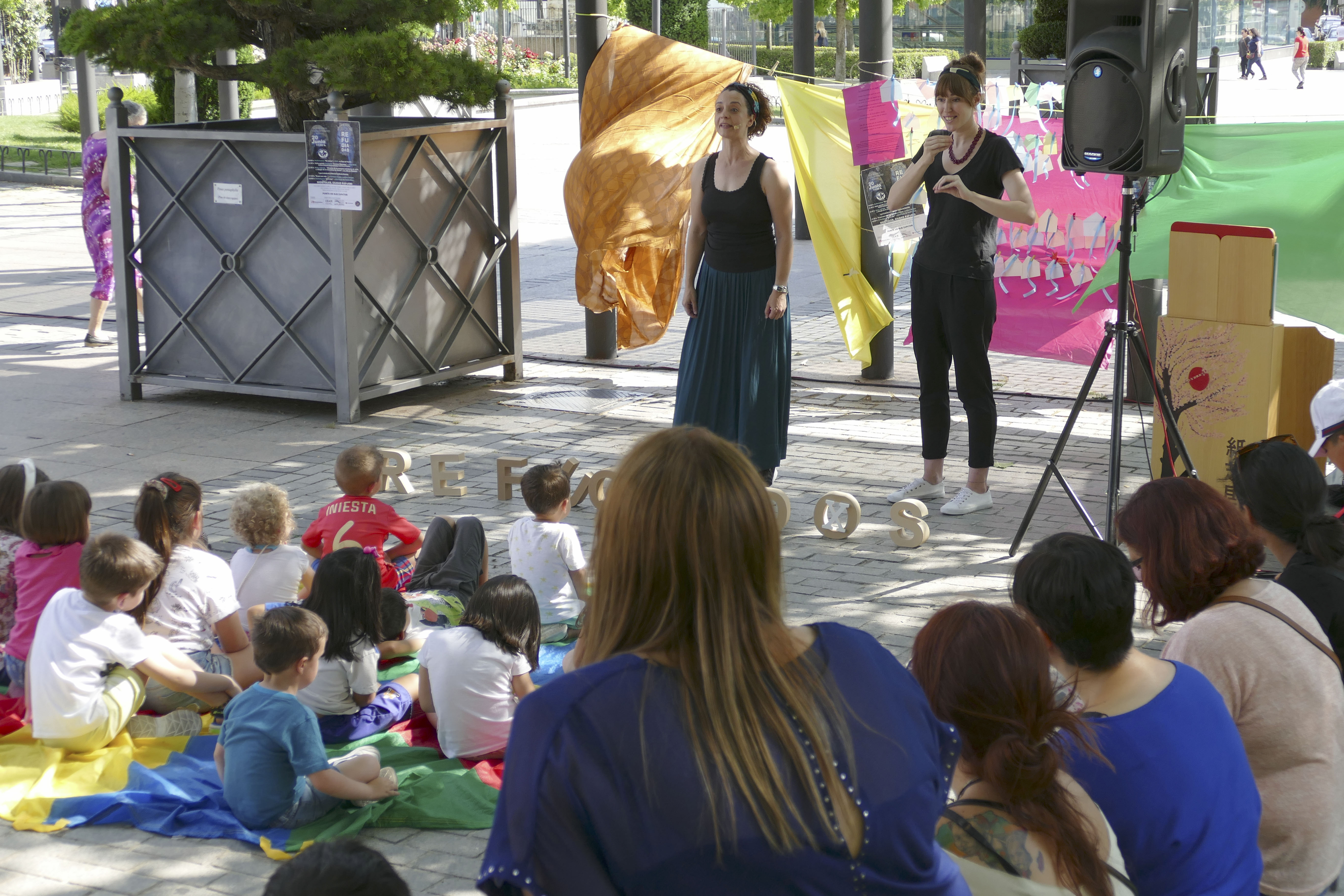 Imagen en alta resolución. Este enlace se abrirá mediante lightbox, puede haber un cambio de contextoLa concejala adjunta de Cooperación y Convivencia, Beatriz Mogrovejo, asistió ayer por la tarde al un cuentacuentos dirigido al público familiar en la plaza del Pradillo. El acto fue ofrecido por un grupo de narradoras mostoleñas, que voluntariamente quisieron participar en la conmemoración de este día aportando el mensaje educativo al público más pequeño.
