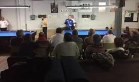 El Sábado 10 de marzo numerosos espectadores asistieron a una estupenda tarde de billar, donde todos los jugadores de nuestro club ganaron con solvencia, apretando especialmente en la segunda parte de sus partidos. Iniciaron la tarde Alfonso Legazpi ganando a José Expósito (40 a 25 en 32) y Adrián Legazpi ganando a una muy meritoria Estela Cardoso (40 a 31 en 32). Completaron la victoria en la segunda ronda José Mª Mas ganando a Jorge Sánchez (40 a 22 en 20) y nuestro reciente número 1 del ranking nacional, Rubén Legazpi, ganando a Valentín Andaluz Blázquez (40 a 10 en 22).