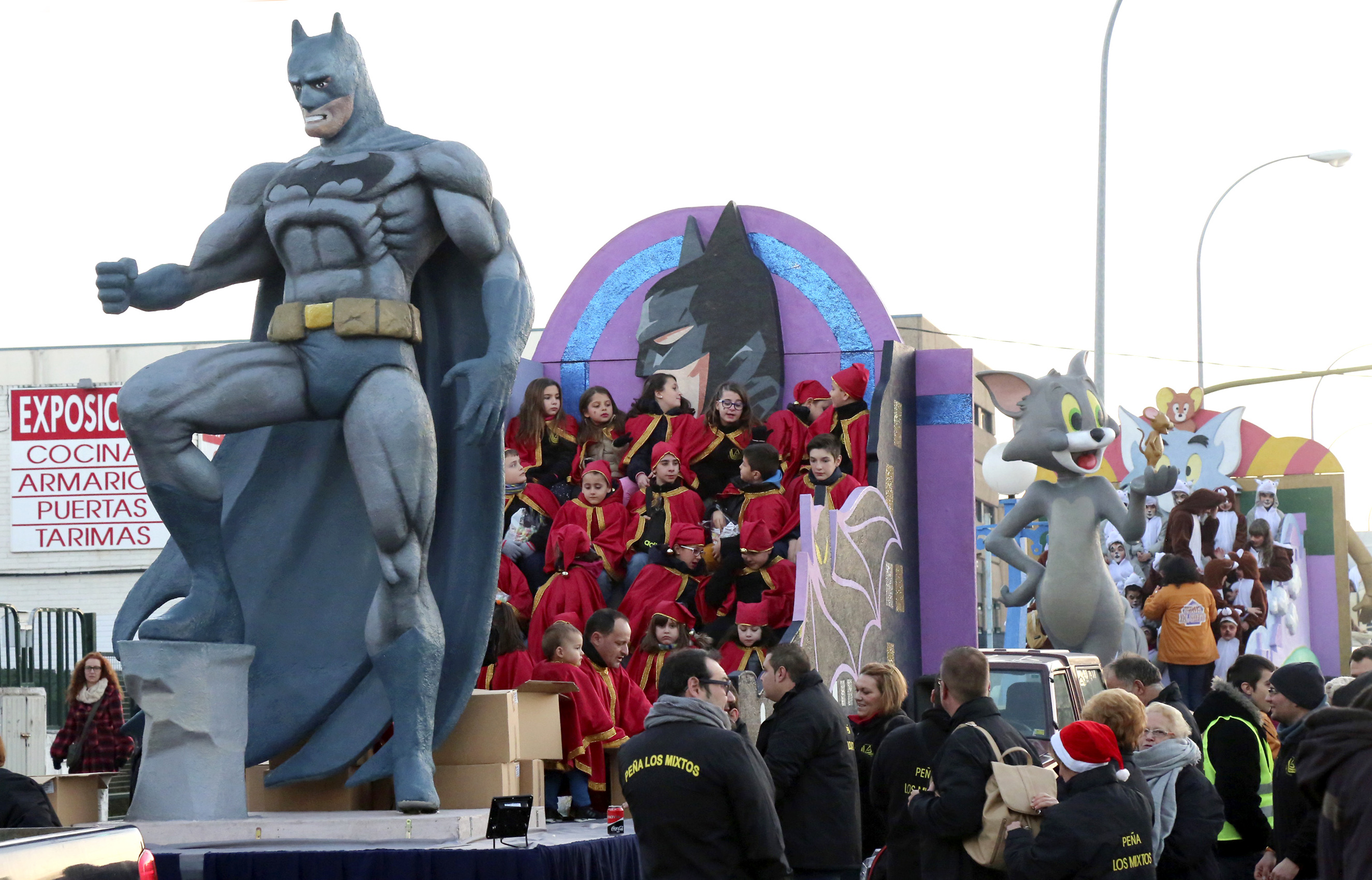 El rey Melchor en la carroza de la peña El Soniquete, el rey Gaspar en la de la peña El Churri y el rey Baltasar en la carroza de la peña Huesca 259 llevaron la ilusión y la alegría a los miles de niños, niñas y sus familiares que siguieron el recorrido. Abriendo el mismo, la Banda Municipal Juvenil y Majorettes que animó a los participantes con sus interpretaciones y coreografías. Los populares personajes de los dibujos animados como Bugs Bunny, Batman, Tom y Jerry, Los Simpson o de la Guerra de las Galaxias, hicieron las delicias de los más pequeños.