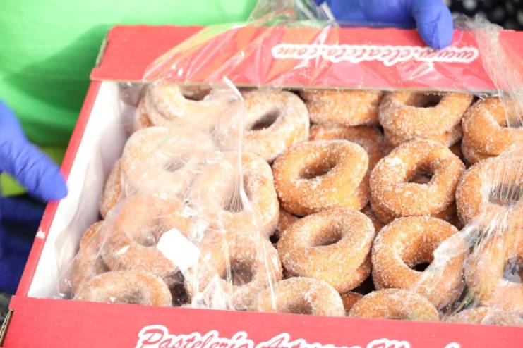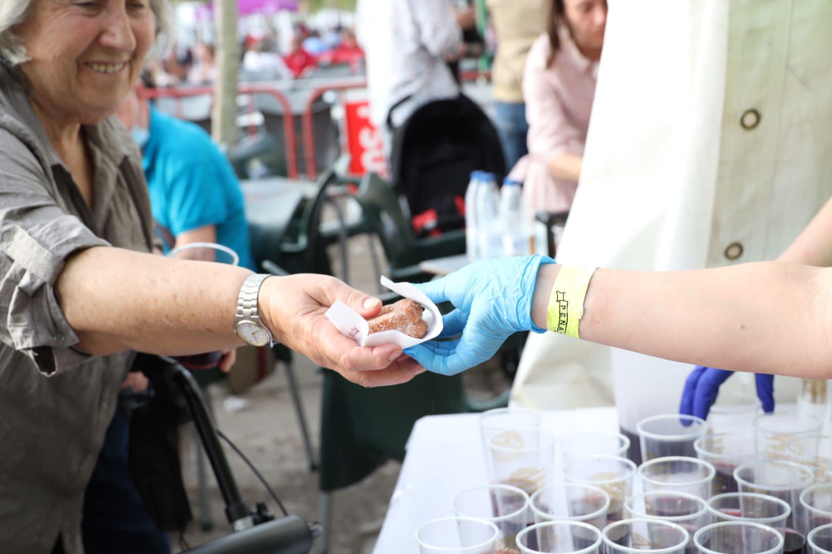 La Peña Mostoles City ofreció, el pasado sábado, en el marco de las Fiestas del 2 de Mayo de Móstoles, su plato estrella, rosquillas con vino dulce, para gusto y deleite de visitantes y lugareños.
