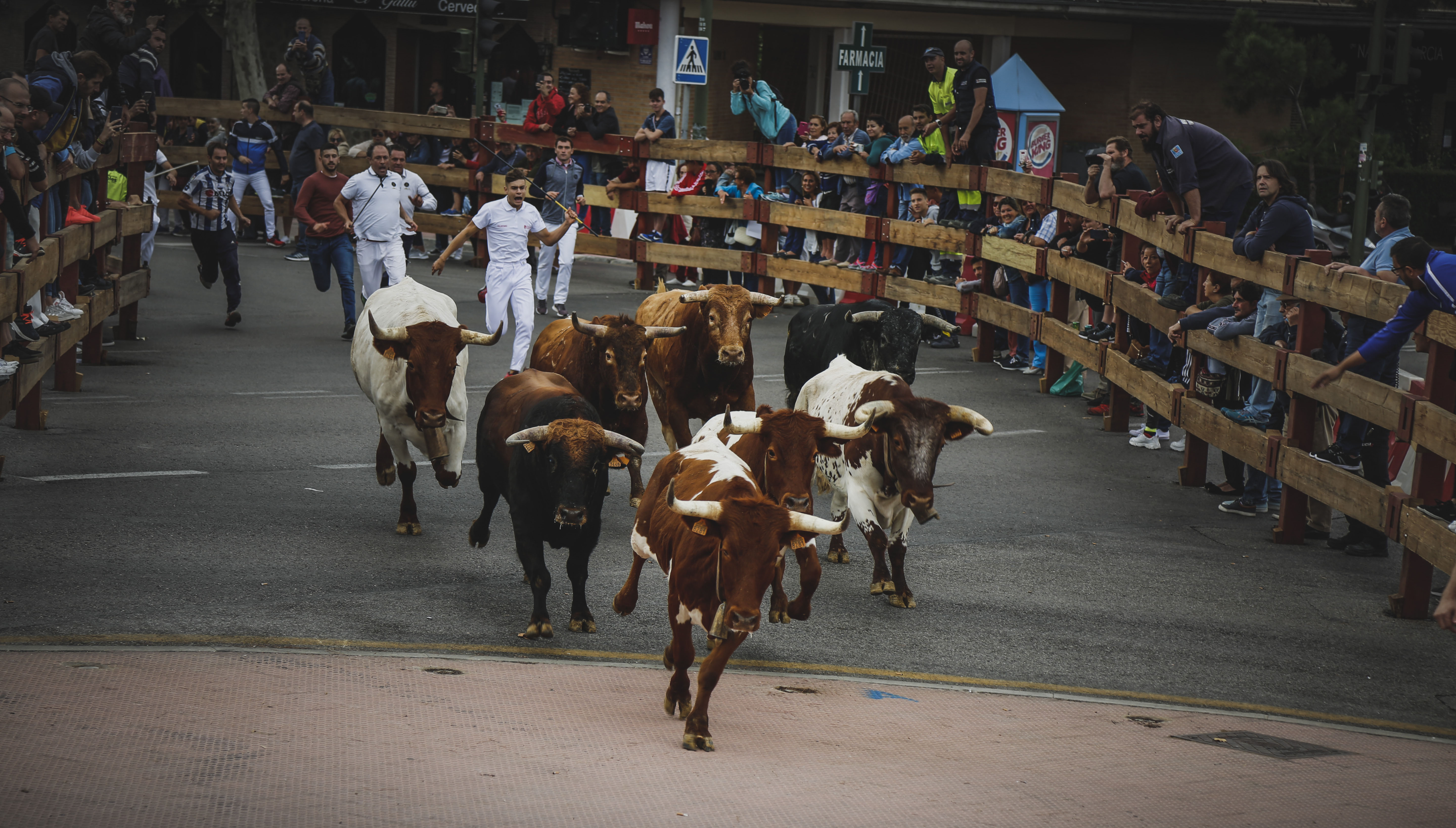 Encierros sabado (3)pImagen en alta resolución. Este enlace se abrirá mediante lightbox, puede haber un cambio de contextoEncierros sabado (3)pEl segundo encierro y suelta de reses previsto en la jornada del sábado de las Fiestas Patronales de Móstoles ha registrado dos heridos leves por caídas, según informó Protección Civil, y con una gran afluencia de público.