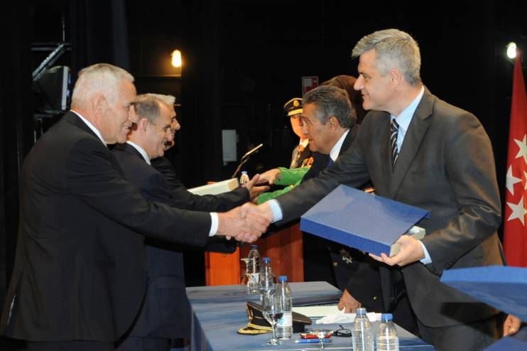 La Policía Nacional ha celebrado esta mañana en Móstoles el día de los Ángeles Custodios con el habitual acto de entrega de condecoraciones y el posterior ágape.