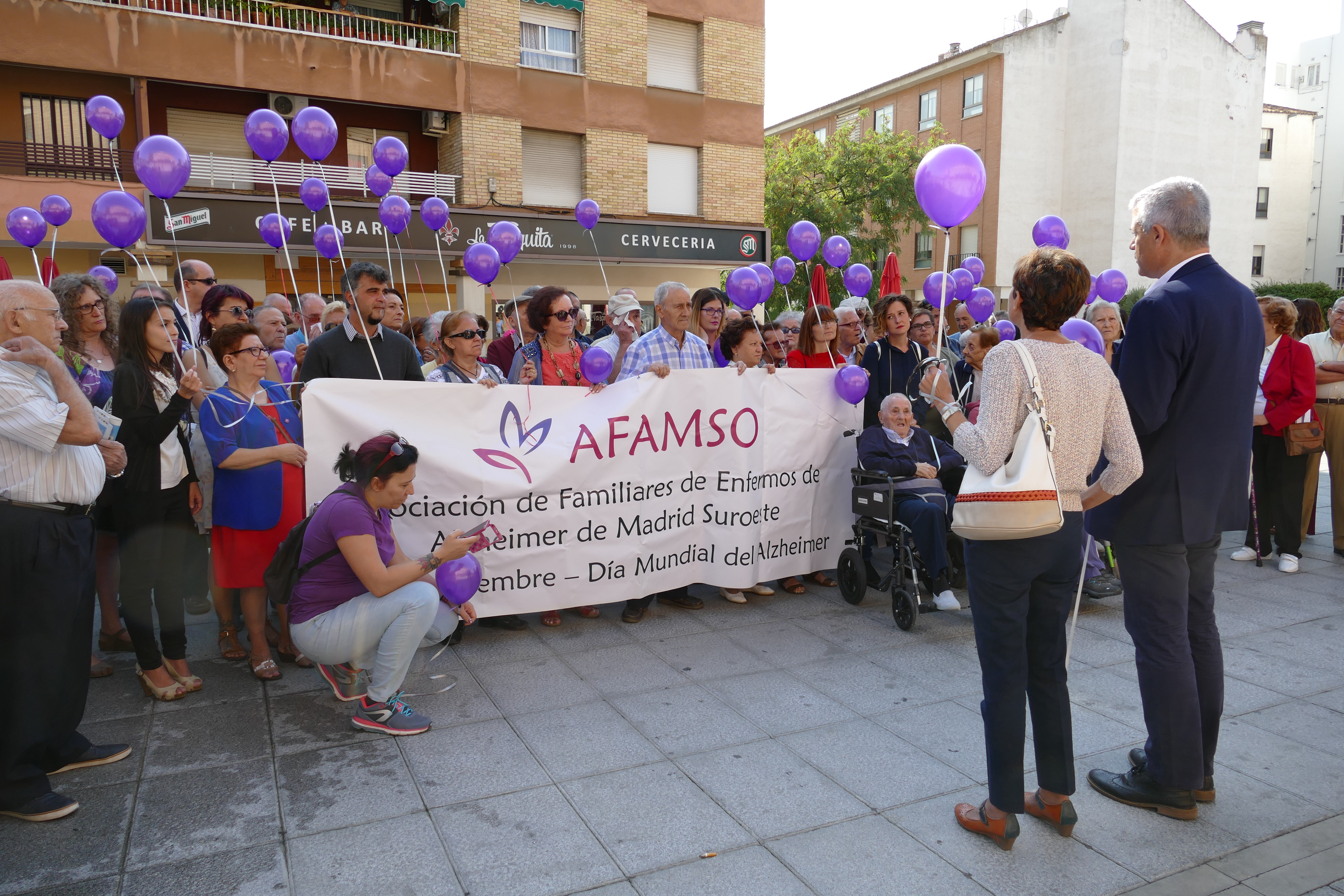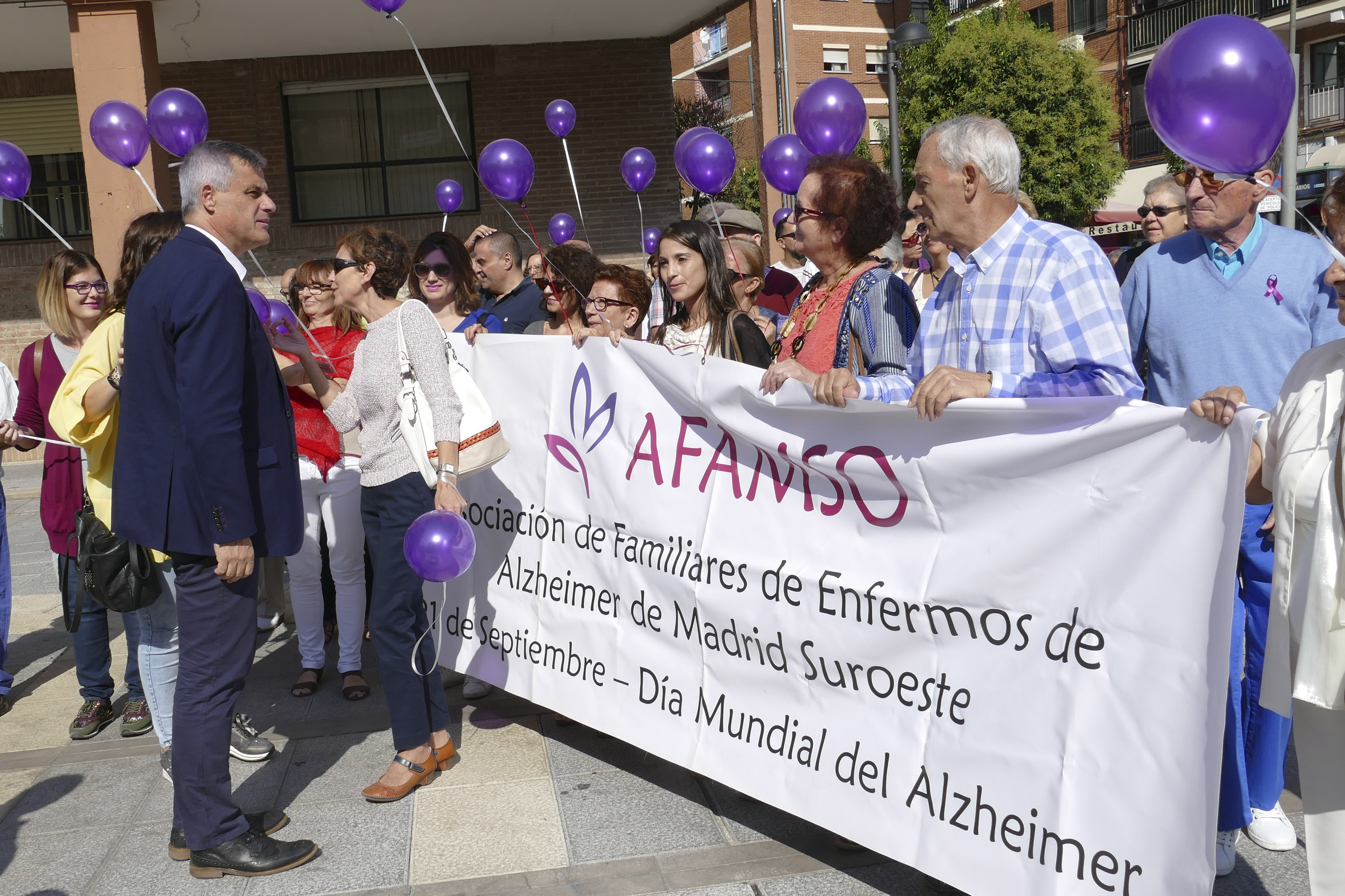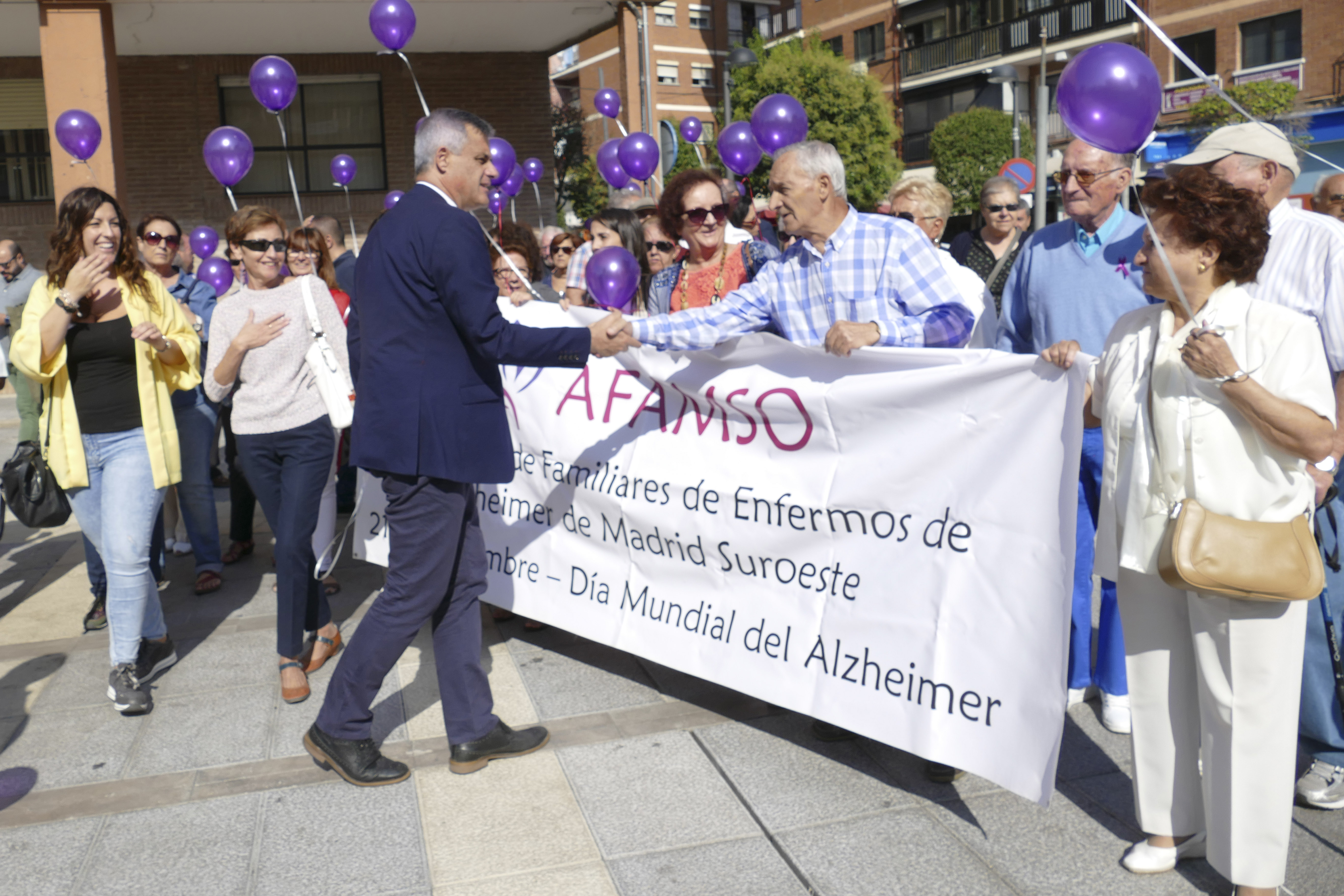 Imagen en alta resolución. Este enlace se abrirá mediante lightbox, puede haber un cambio de contextoEl alcalde de Móstoles, David Lucas, acompañado de concejales del Gobierno, ha participado esta mañana en los actos organizados por la Asociación de Familiares de Enfermos de Alzheimer Madrid Suroeste (AFAMSO) y el Ayuntamiento de la localidad con motivo de la conmemoración del Día Mundial del Alzheimer. La iniciativa consistió en una marcha solidaria por las calles del municipio, una suelta de globos en la plaza de España, reparto de una limonada para los asistentes y la instalación de una mesa de información y cuestación en la Avda. Dos de Mayo, a la altura de la Plaza del Pradillo.