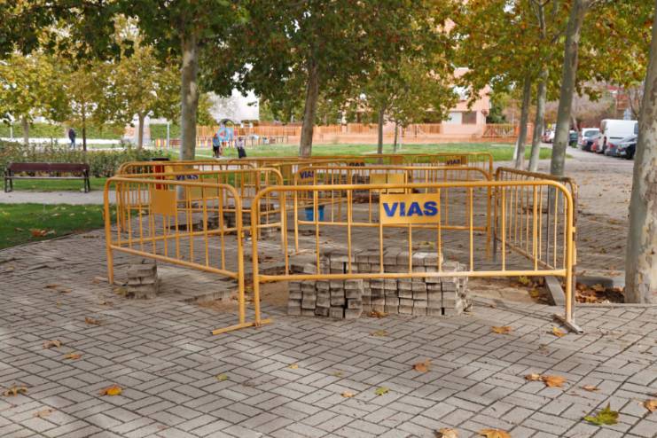 Imagen en alta resolución. Este enlace se abrirá mediante lightbox, puede haber un cambio de contextoEn el marco de las actuaciones del Servicio Especial de Atención de los Distritos (SEAD), se está procediendo a la sustitución de las baldosas de la acera de la plaza situada entre las Calle Moraleja de Enmedio y Calle Nápoles, en la Junta de Distrito Sur-Este de Móstoles. Las raíces de los árboles habían levantado la zona acerada. Las obras responden a las sugerencias de los vecinos y el objetivo es reparar y reponer los pequeños desperfectos detectados.