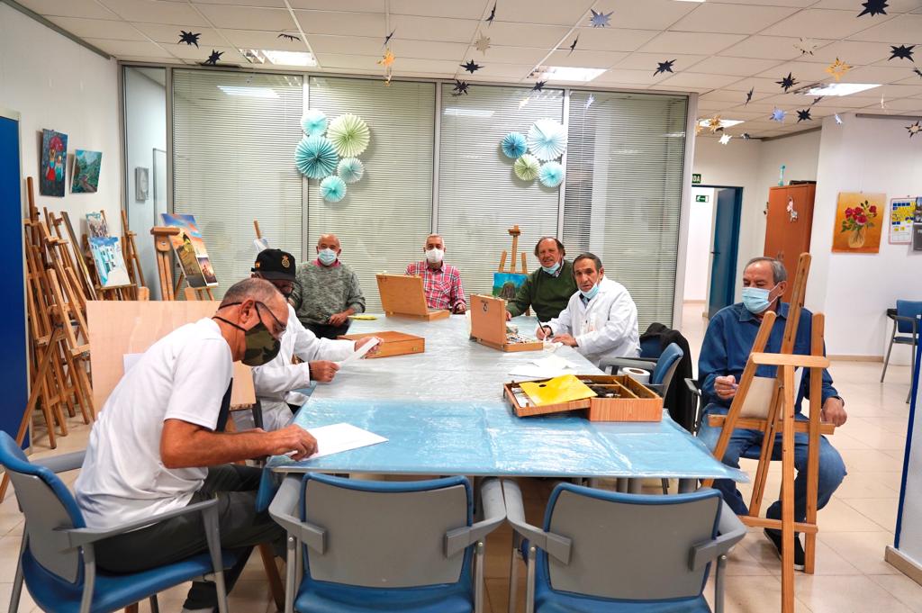Las alumnas y alumnos tienen la oportunidad de diseñar su propia postal pintada a óleo con la orientación de los monitores que les enseñan diferentes técnicas de pintura. En total participan en este taller, que se desarrollará hasta el día 16 de diciembre, una docena de mayores.
