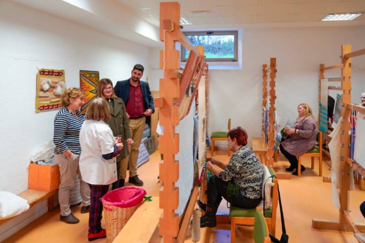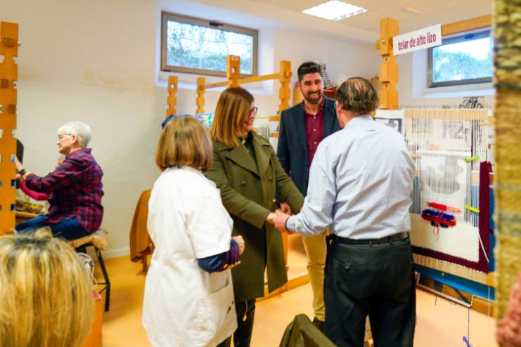 Imagen en alta resolución. Este enlace se abrirá mediante lightbox, puede haber un cambio de contextoLa alcaldesa, Noelia Posse, acompañada por la concejala de Presidencia, Rebeca Prieto, y el concejal de Cultura, Álex Martín, ha visitado el taller de tapices y alfombras que se imparte en el Centro Socio Cultural El Soto y en el que participan 18 personas.