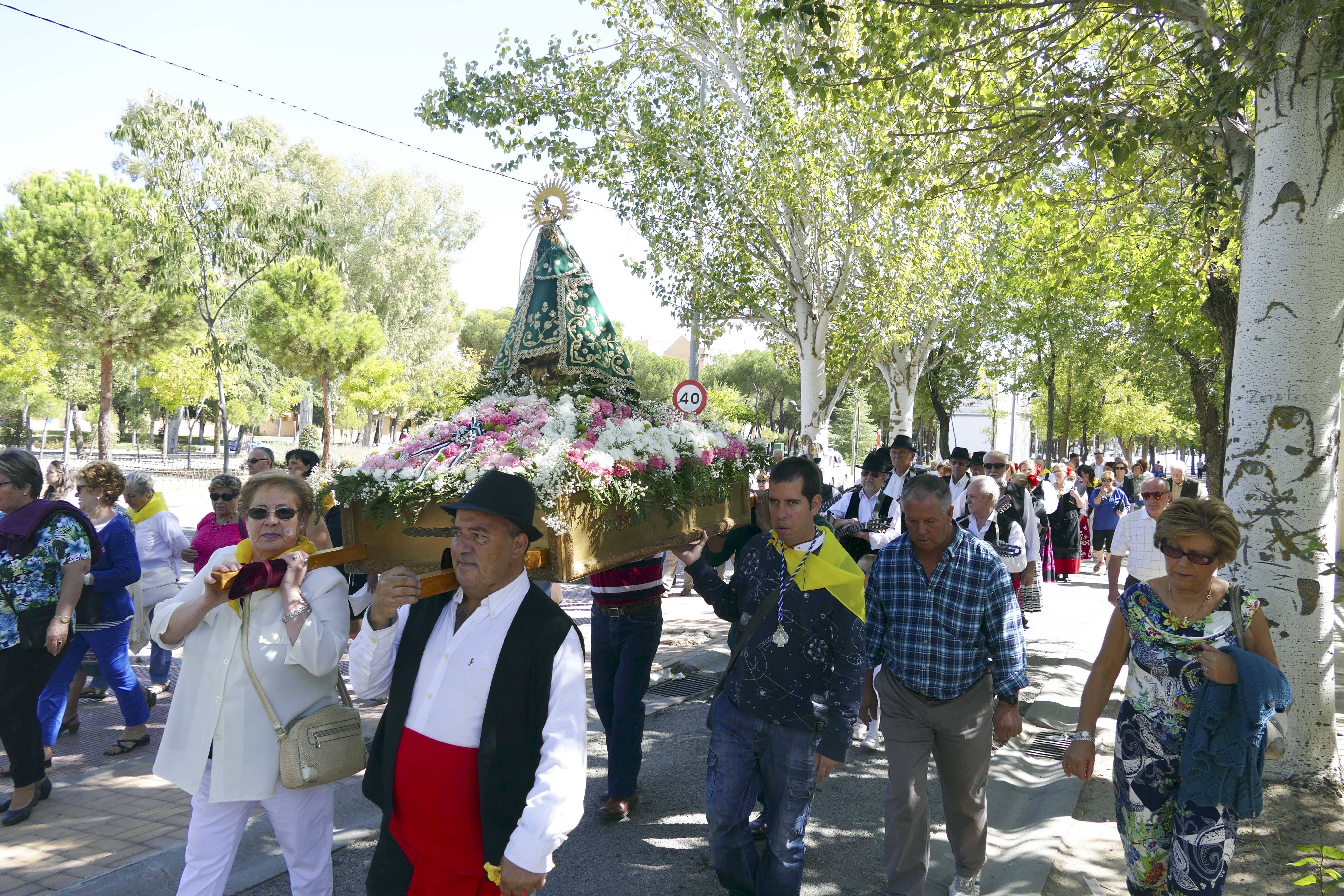 Imagen en alta resolución. Este enlace se abrirá mediante lightbox, puede haber un cambio de contextoEl pasado domingo se celebró la procesión en honor de Nuestra Señora de Guadalupe que acoge el Hogar Extremeño de Móstoles. Con asistencia de la concejala de Desarrollo Económico, Empleo y Nuevas tecnologías, Jessica Antolín y de la concejala de Igualdad, Sanidad y Mayores, Ana María Rodrigo, vecinos y vecinas de origen extremeño con el traje regional se dieron cita para celebrar esta tradicional procesión, Durante el acto tuvo lugar una actuación de un grupo folclórico del Hogar Extremeño.