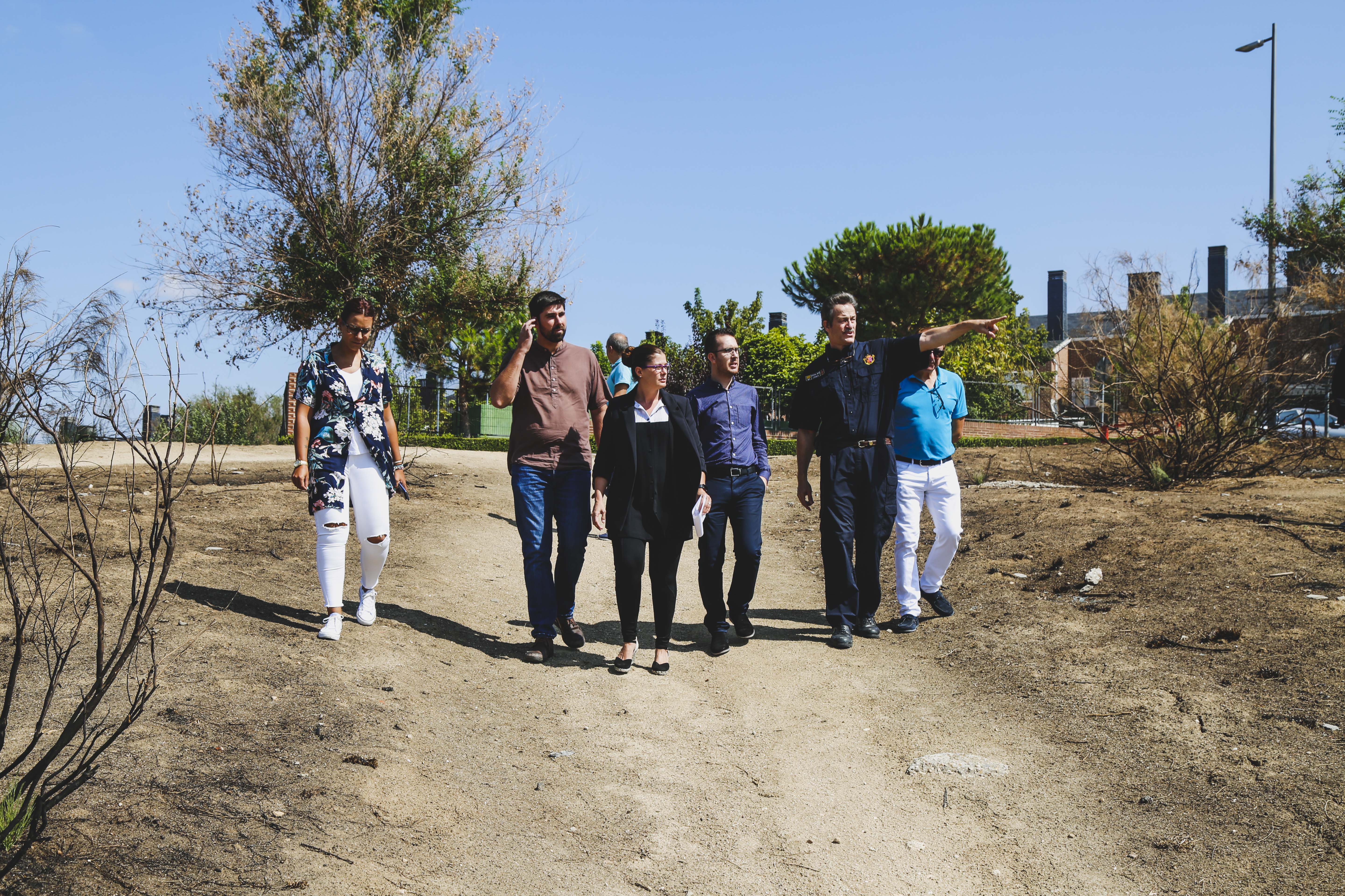 La regidora, acompañada del concejal de Mejora y Mantenimiento de los espacios públicos, David Muñoz, el concejal de Transición Ecológica y Seguridad, Alejandro Martín, la concejala de Presidencia, Rebeca Prieto, y el jefe de Bomberos, José Javier Guijarro, ha visitado esta mañana los trabajos que se están realizando para acondicionar con una zona de cortafuegos de 20 metros la urbanización de Parque Coímbra.