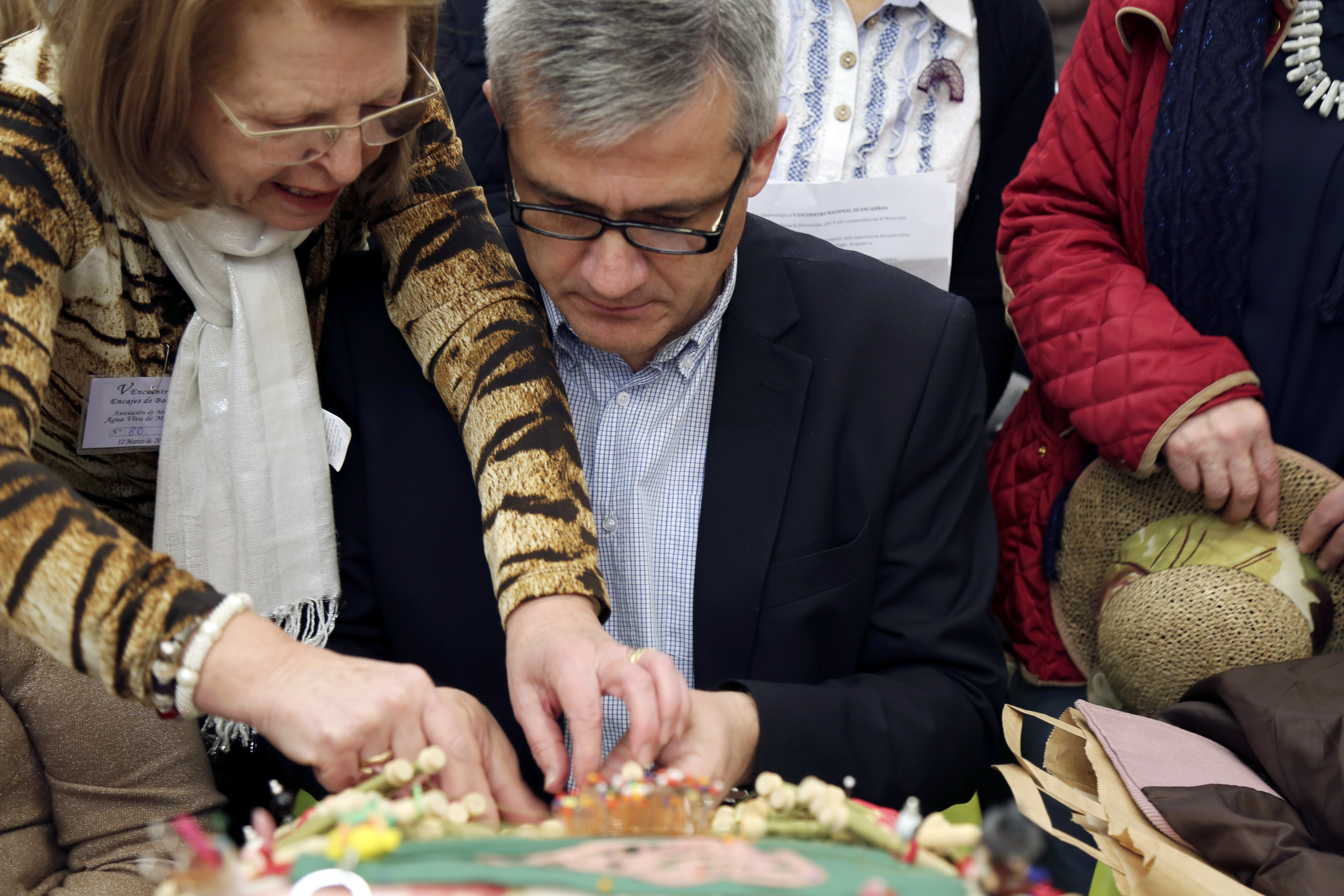 El alcalde de Móstoles, David Lucas, ha asistido al V Encuentro Nacional de Encaje de Bolillos, organizado este sábado por la Asociación de Mujeres Agua Viva en colaboración con el Área de Igualdad y Diversidad en el colegio Julián Besteiro. La jornada formaba parte de los actos programados durante el mes de marzo con motivo de la celebración del "Día de la Mujer".