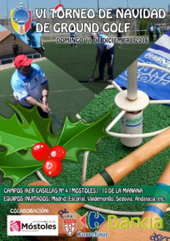 Imagen en alta resolución. Este enlace se abrirá mediante lightbox, puede haber un cambio de contextoEl próximo domingo 11 de diciembre a partir de las 10.00 horas se disputará en los campos de fútbol Iker Casillas, en el marco del programa de las Fiestas de Navidad, el VI Torneo de Navidad de Ground Golf, con la participación de equipos de Móstoles, Madrid, El Escorial, Segovia, Valdemorillo y de Andalucia. Organiza la Asociación Deportiva Móstoles de Ground Golf, con la colaboración de la Concejalía de Deportes.