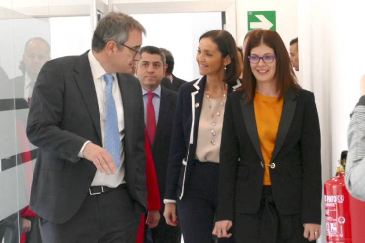 • La ministra de Industria, Comercio y Turismo, Reyes Maroto, acompañada por la alcaldesa de Móstoles, Noelia Posse, inauguraron la segunda planta de las nuevas instalaciones.