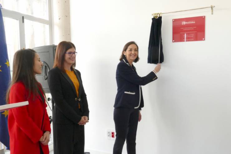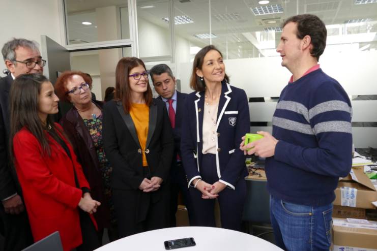 La ministra ha visitado las instalaciones y la ampliación del Vivero de Empresas, donde ha descubierto una placa conmemorativa.