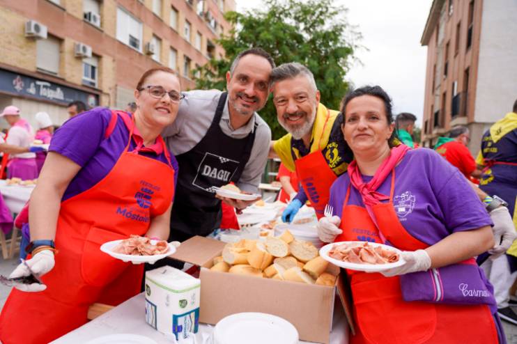 El cuarto día de Fiestas Patronales arrancó al igual que el martes, con los tradicionales desayunos populares, que reunieron de nuevo a cerca de 4.000 mostoleños en la Plaza de España. Durante la mañana, además de los huevos fritos, se repartieron alrededor de 20 kilos de beicon para acompañar el desayuno.