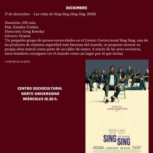 Dentro del programa Filmoteca, el miércoles 17 a las 18:30 h se proyecta la película "Las vidas de Sing Sing" (Sing Sing, 2023), en el Centro Sociocultural Norte-Universidad.