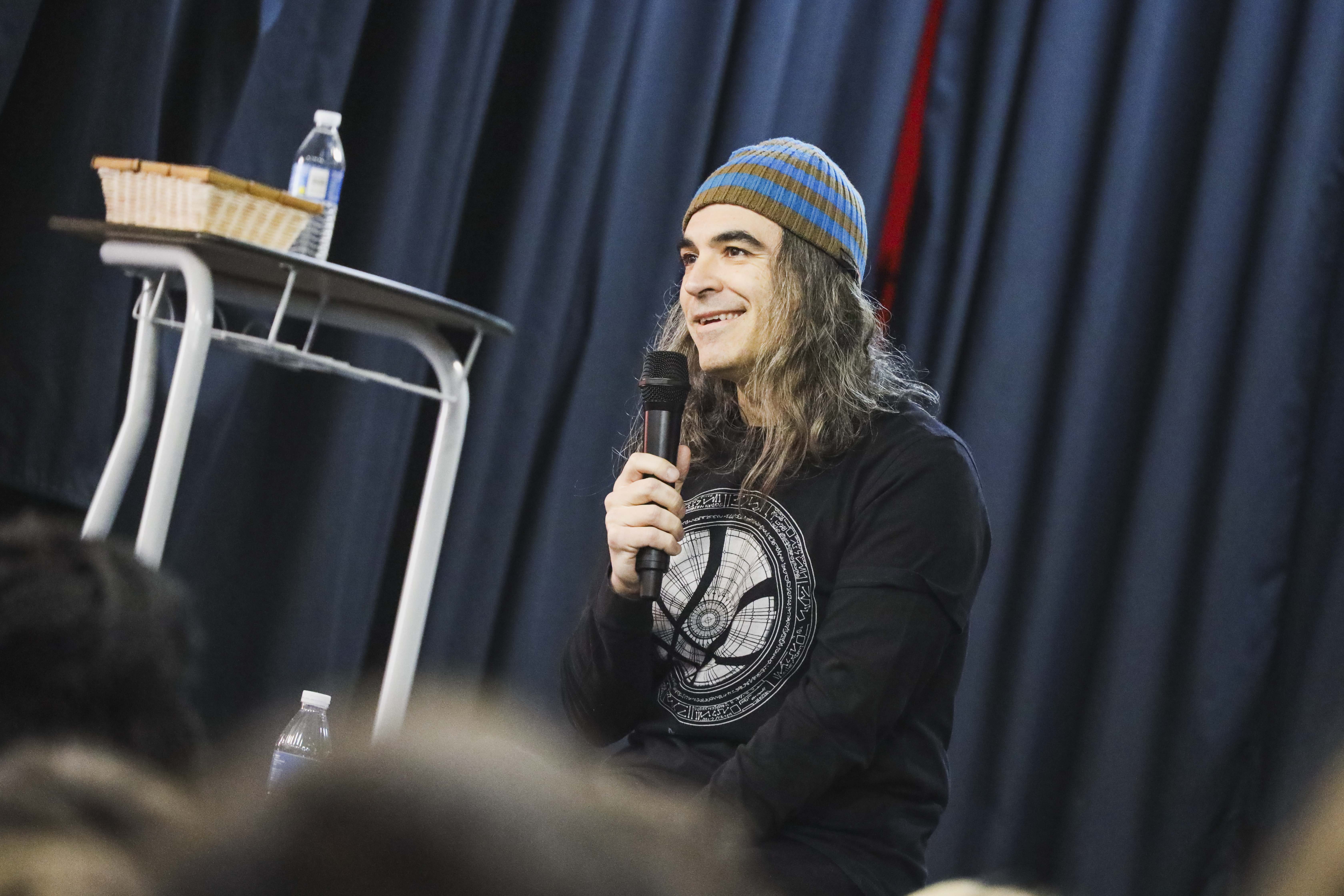 Alonso, con su peculiar look con gorro de rayas azules y marrones, pelo largo y camiseta, ha dado unas pautas y consejos a los estudiantes para aprender a identificar o estar alerta ante las múltiples amenazas digitales que avanzan a un ritmo vertiginoso en un mundo cada vez más interconectado.