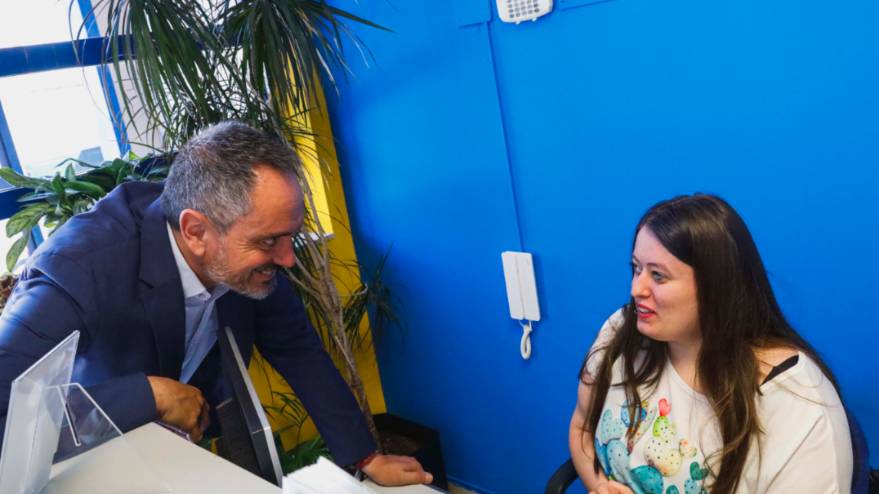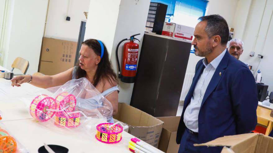 El Alcalde de Móstoles, Manuel Bautista, ha visita el Centro Ocupacional, de Formación, Oportunidades e Inserción Laboral (COFOIL) de la asociación Afanias "La Encina", con el objetivo de visibilizar la labor de este centro para la integración e inclusión laboral de las personas con discapacidad intelectual.