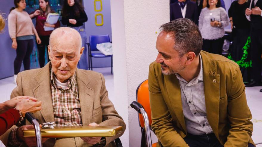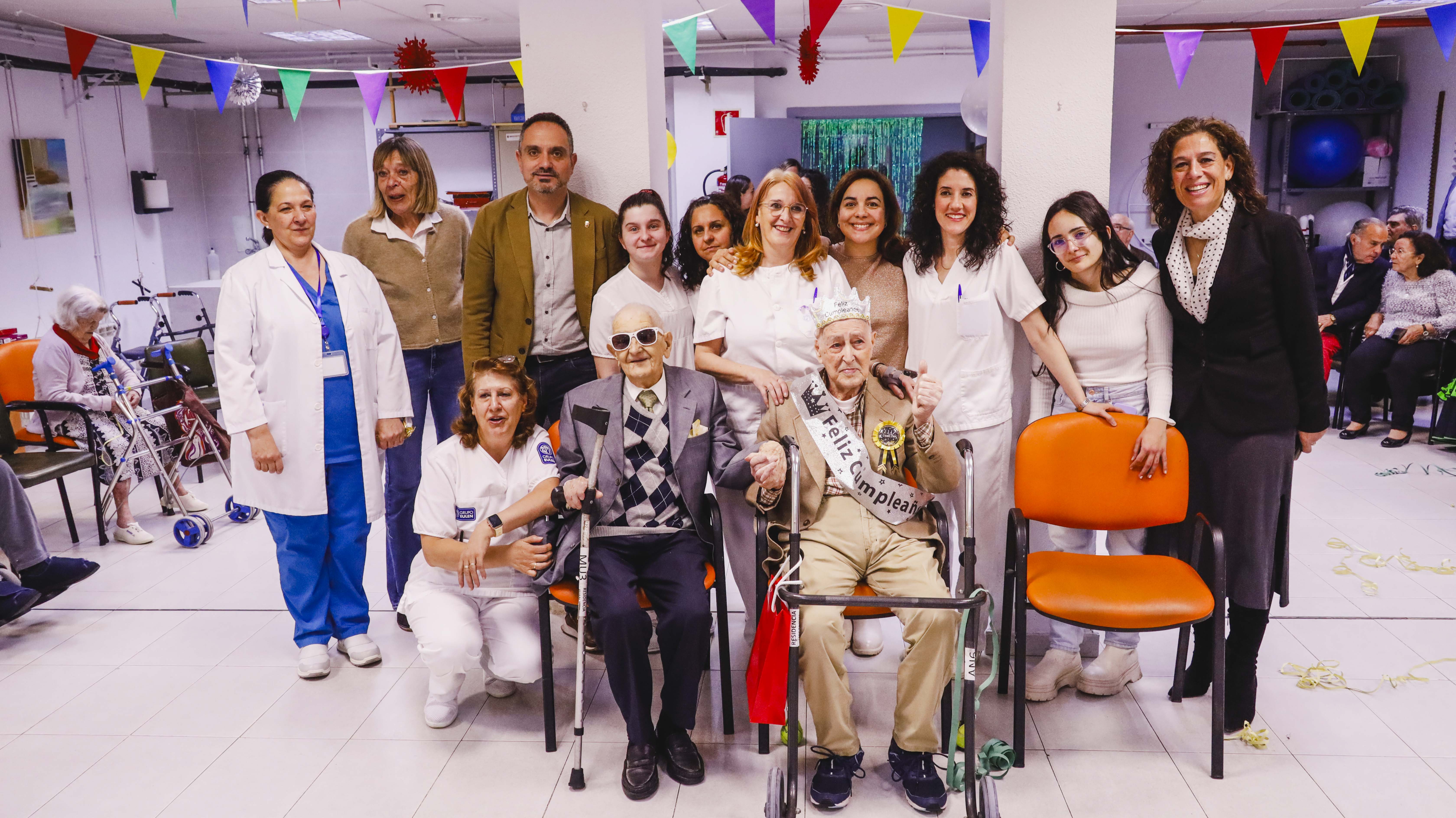 - Familiares, sanitarios, empleados municipales de la residencia, y sus compañeros han querido rendir un homenaje al residente más longevo en su centenario.