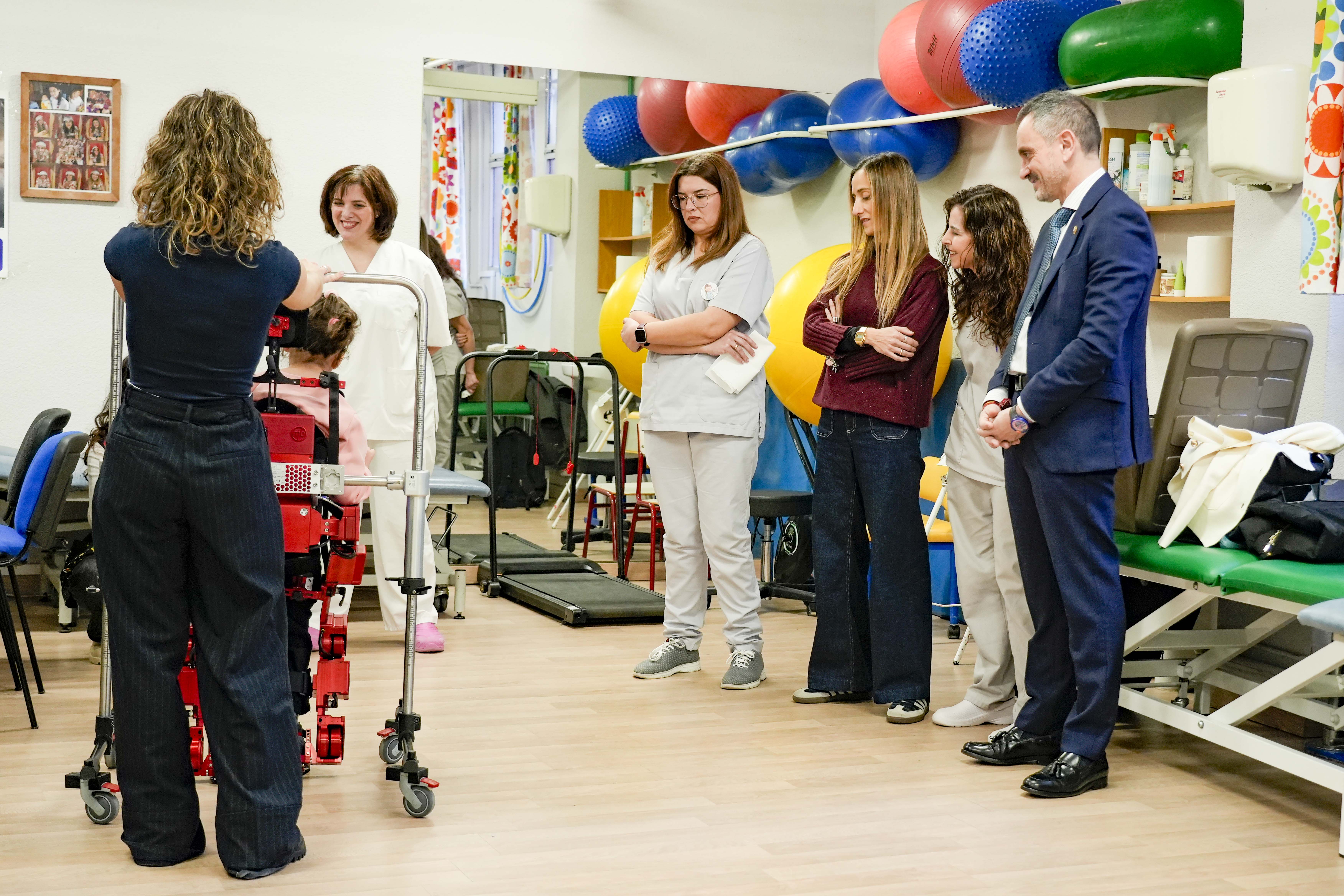 El alcalde de Móstoles, Manuel Bautista, ha visitado hoy una de las tres sesiones que se han realizado hasta ahora en el curso escolar 2025-26 para conocer el exoesqueleto Atlas 2030 y sus beneficios en el alumnado tanto a nivel motor como a nivel emocional.
