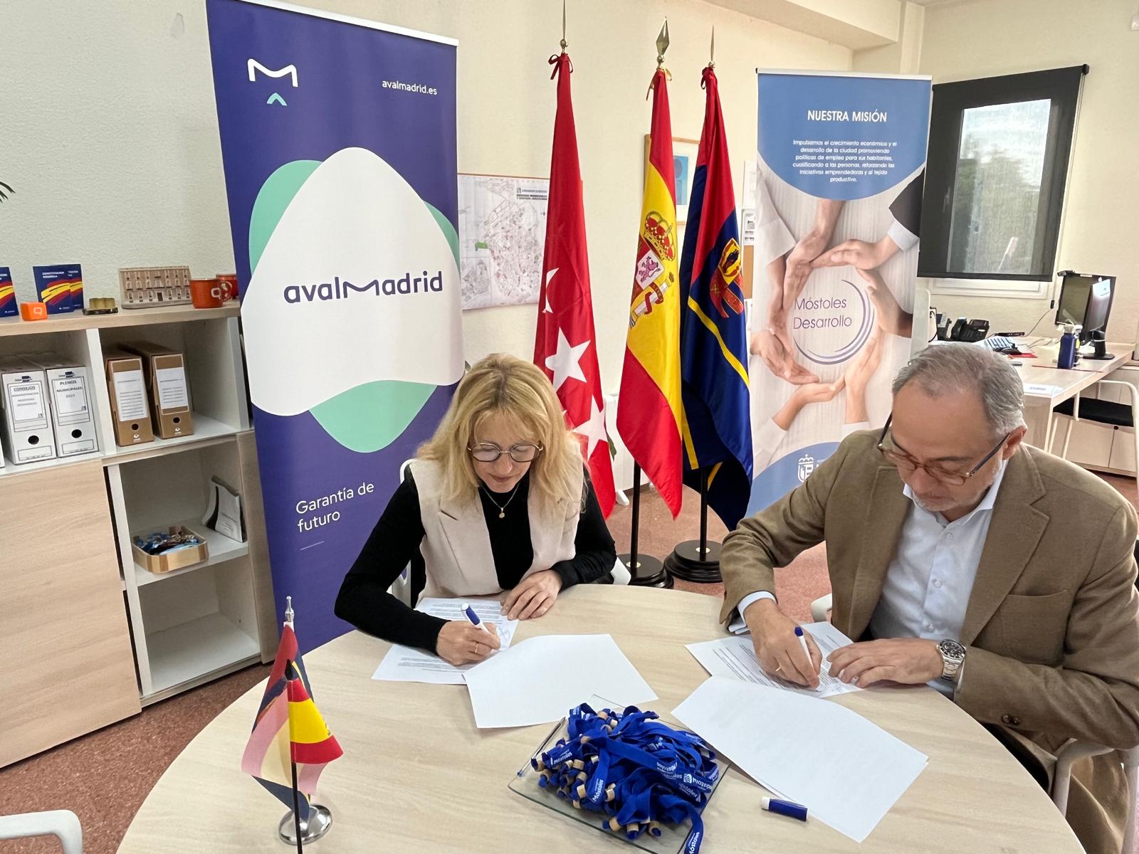 A la firma han acudido la concejal de Economía, Industria y Empleo, Ángeles García, y el director general de Avalmadrid, Lorenzo García. Móstoles Desarrollo pretende, con este convenio, facilitar la financiación a su tejido empresarial, así como fomentar el emprendimiento y la creación de empresas.