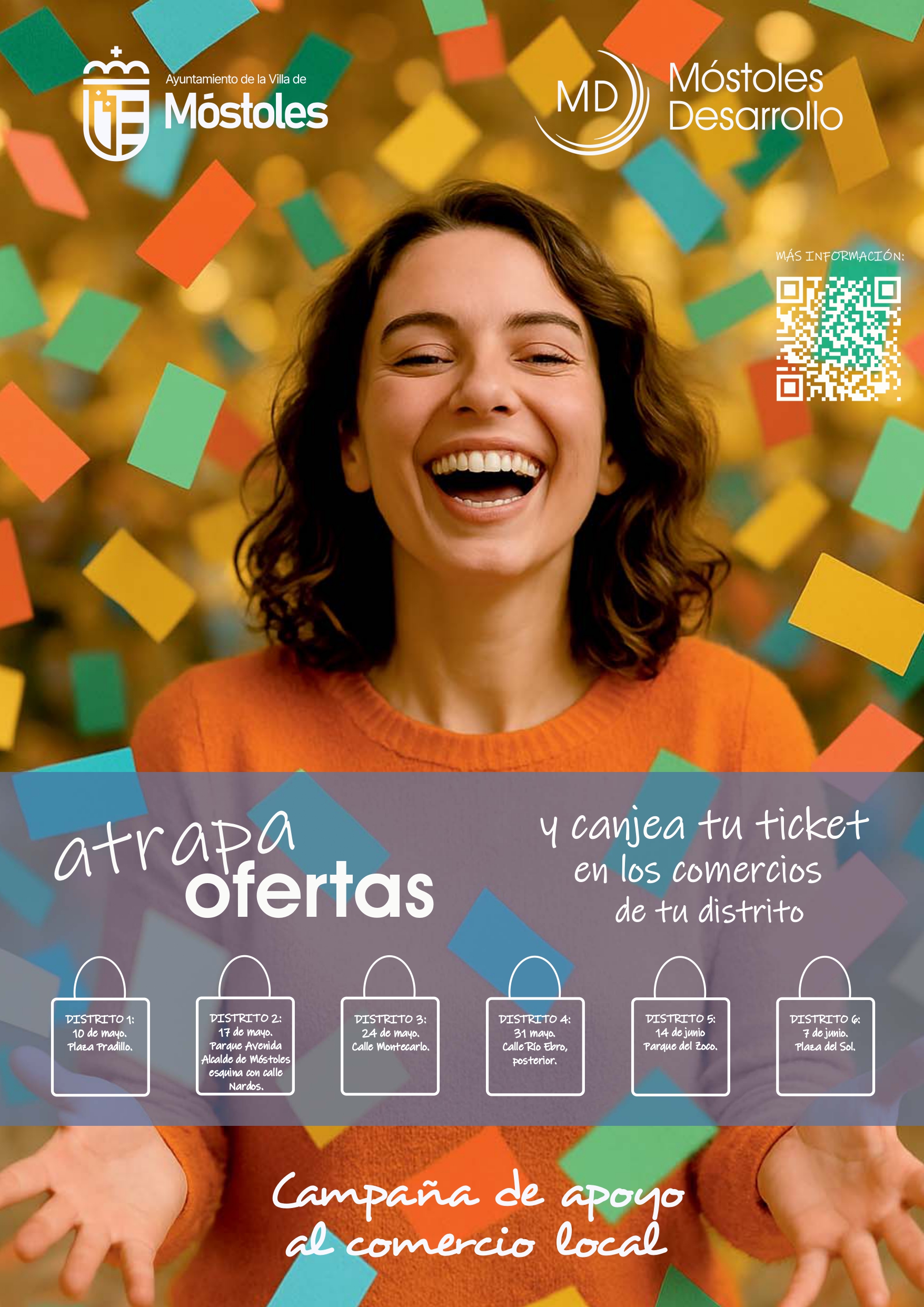 El Ayuntamiento de Móstoles organiza, por primera vez, a través de Móstoles Desarrollo, la campaña "Atrapa Ofertas" que llevará de manera itinerante a todos los distritos del municipio, para promocionar el comercio local y la hostelería de cada uno.