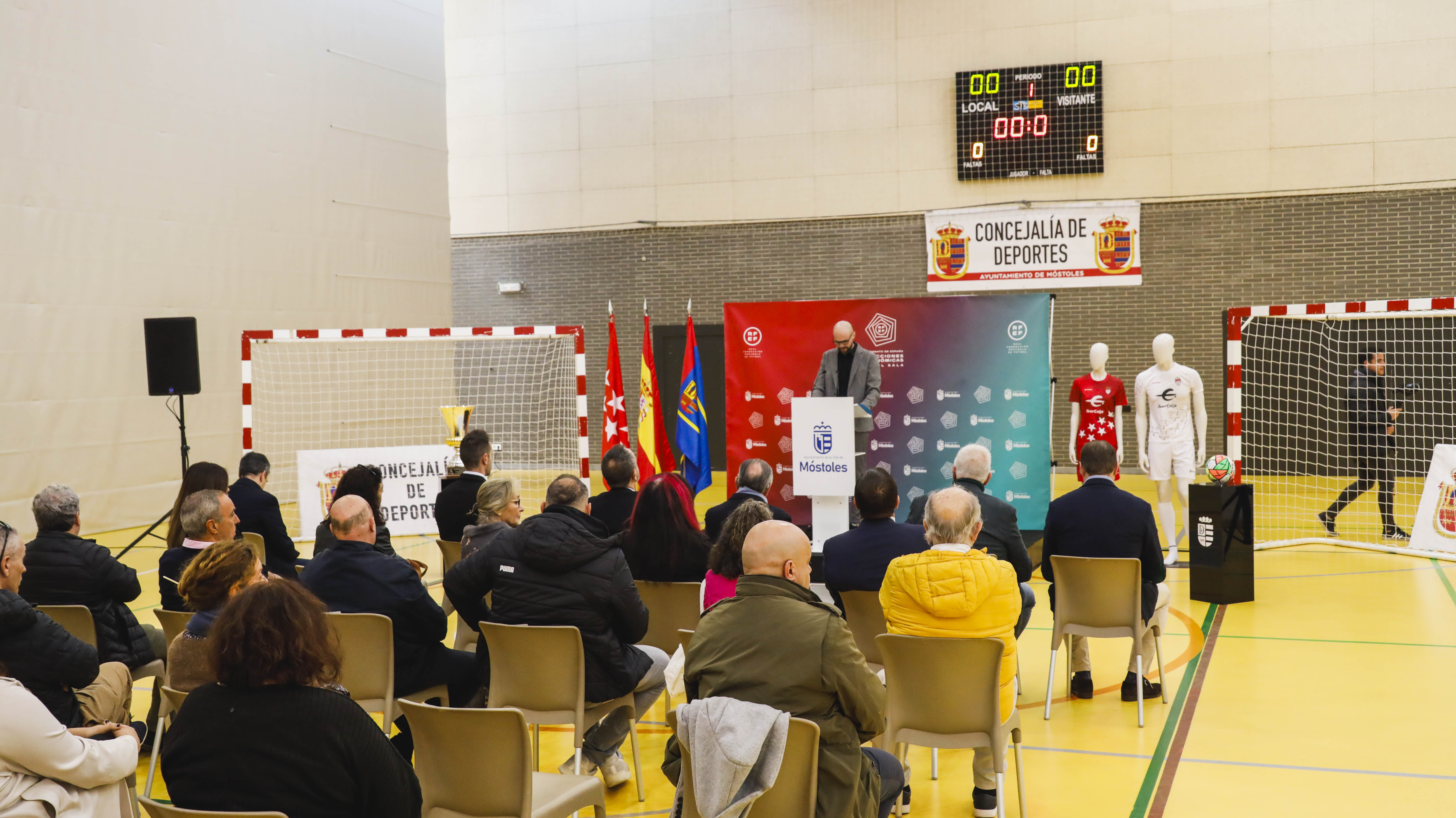 Al acto de presentación del evento, organizado por el Ayuntamiento de Móstoles, han asistido el Alcalde de Móstoles, Manuel Bautista, el Concejal de Deportes, Ángel Álvarez; el Director de Fútbol Sala de la Real Federación Española de Fútbol (RFEF), Paco Sedano; y, el Presidente de la Real Federación de Fútbol de Madrid (RFFM), Francisco Javier Díez, junto a otros miembros de la Corporación municipal.