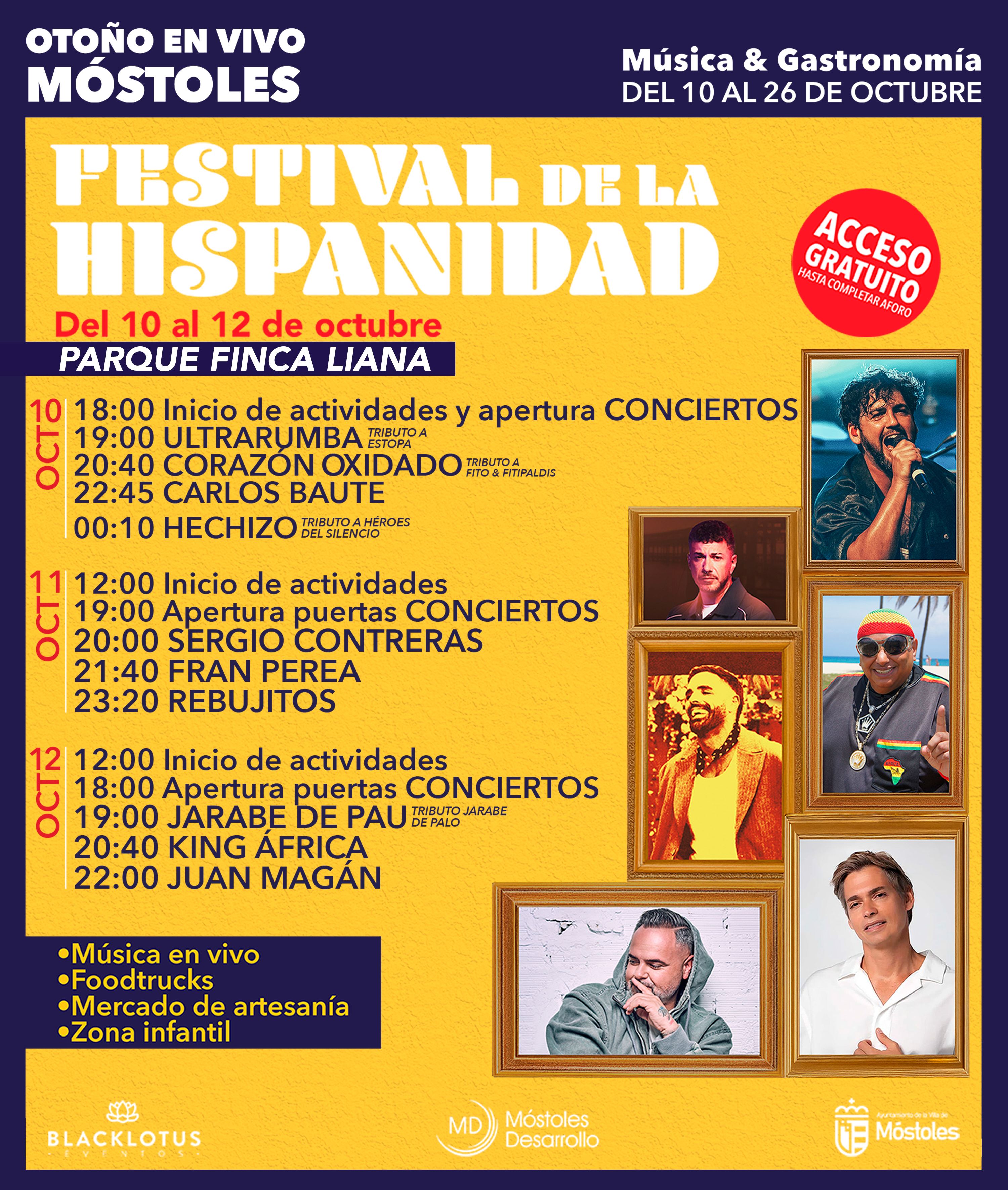 Este festival forma parte de la programación de "Otoño en Vivo", un programa de Música & Gastronomía, desarrollado por el Ayuntamiento de Móstoles, a través de la Concejalía de Educación y Festejos y de Móstoles Desarrollo, que trae a la ciudad además del Festival de la Hispanidad, la fiesta Oktoberfest, del 16 al 19 de octubre, y "The Burger Cup", del 22 al 26 de octubre.