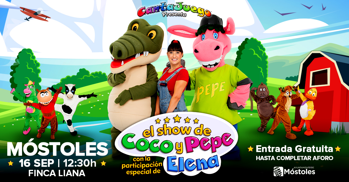 El cocodrilo Coco y el burrito Pepe llegan junto a Buby la Ardilla, el Gorila y su baile, el Caballo Verde, la Pulga Aventurera y La Vaca Lechera a Parque Finca Liana con"El show de Coco y Pepe". Se trata de un espectáculo para toda la familia, con las canciones más exitosas y con historias que harán las delicias del público. Será el sábado 16 a las 12:30 h.