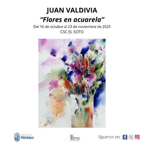 El jueves 16 arranca la exposición de pintura en acuarela "Flores en acuarela", del artista Juan Valdivia, en el Centro Sociocultural El Soto, hasta el 23 de noviembre.