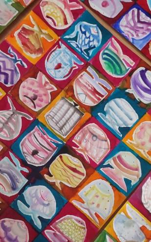 El artista propone un mural participativo, "Peces de colores (Fragmento)", de 500 acuarelas originales sobre papel de algodón que se plantea como una actividad cocreativa y de participación ciudadana.