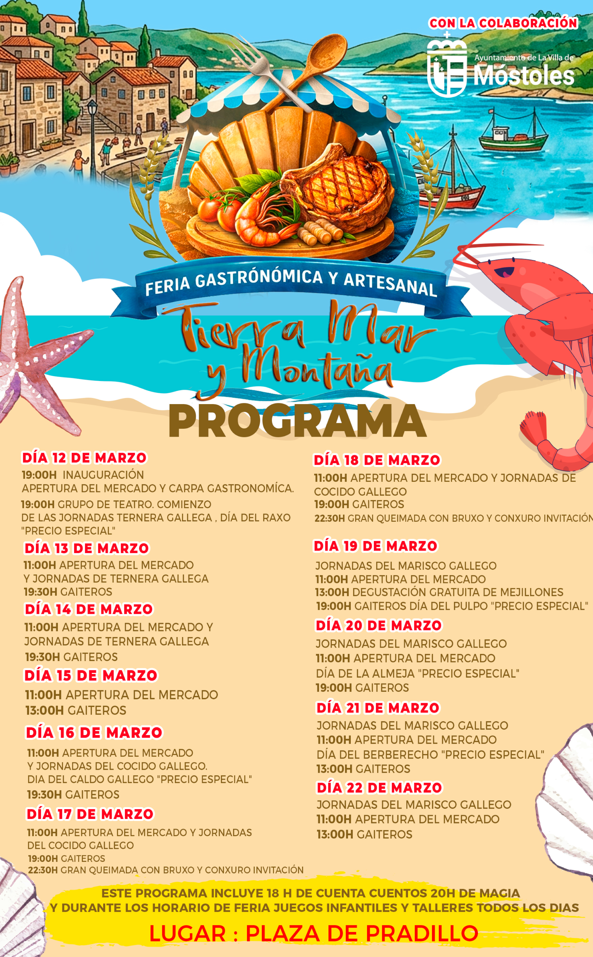 - La Feria Gastronómica y Artesanal "Tierra, Mar y Montaña" se celebrará en la Plaza del Pradillo y estará abierta al público del 12 al 22 de marzo.