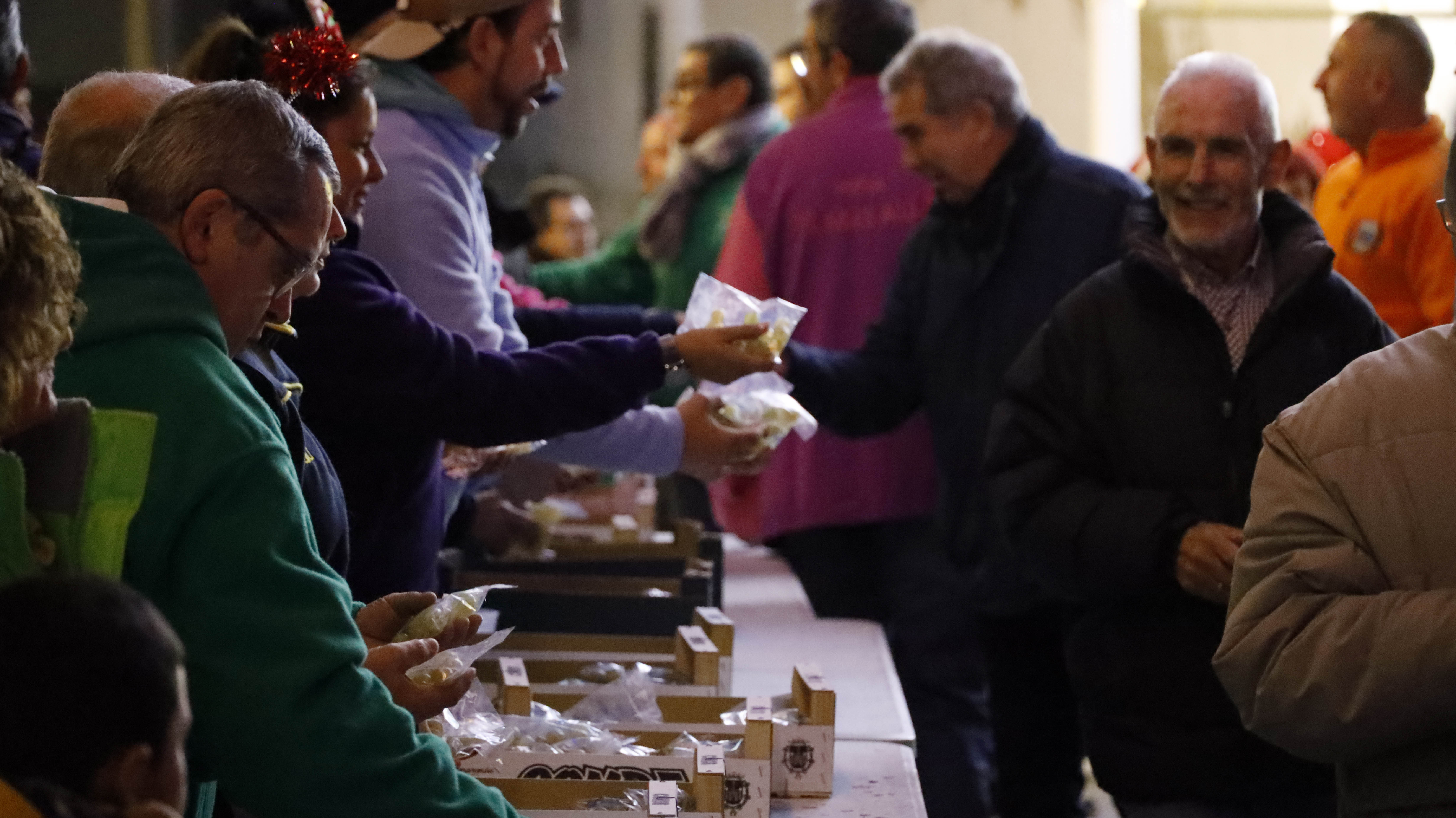 El Ayuntamiento de Móstoles, en colaboración con la Federación de Peñas de Móstoles, ofreció gratuitamente a los vecinos un total de 5.000 raciones de uvas, 1.000 raciones más que el año pasado.