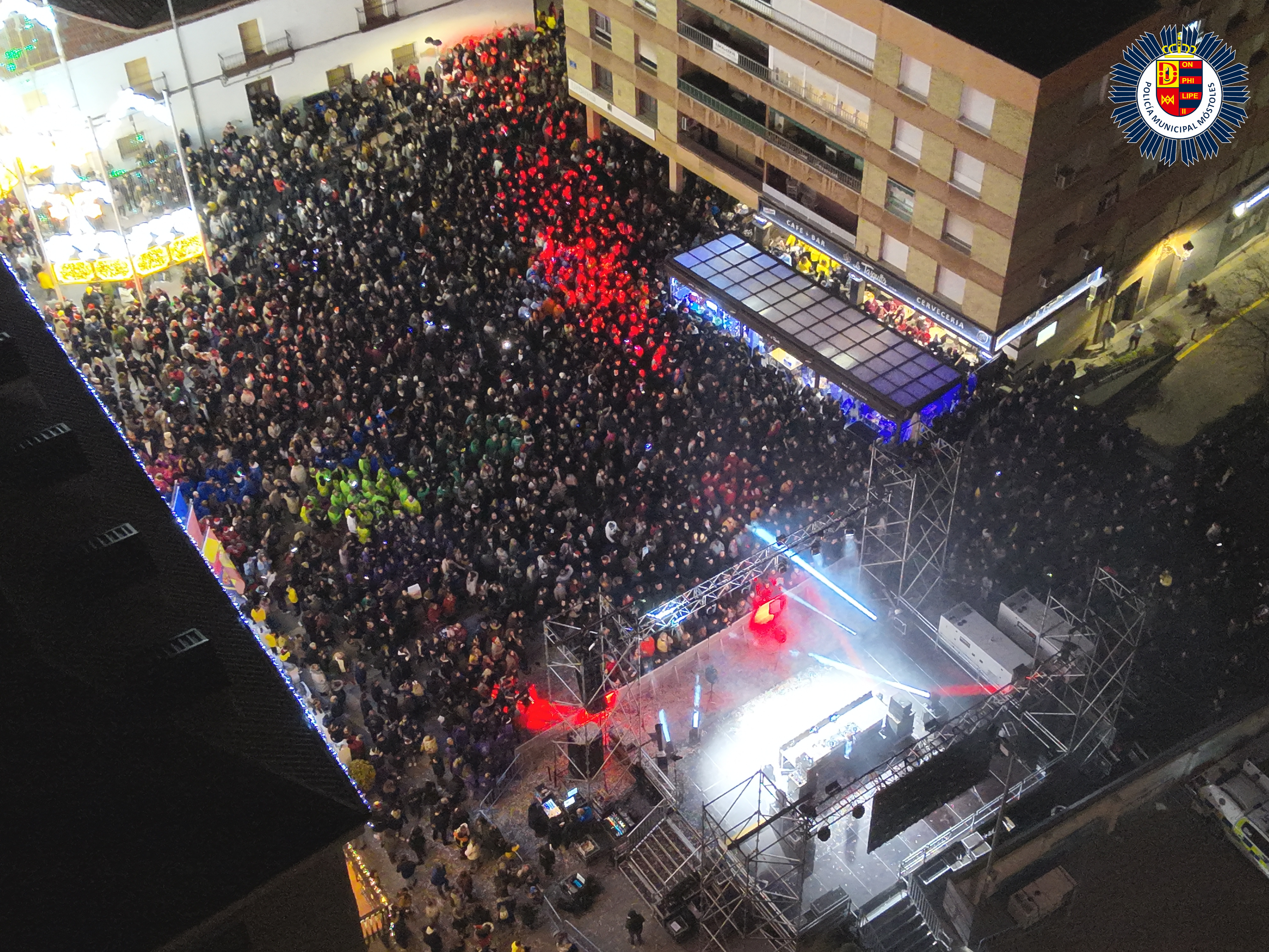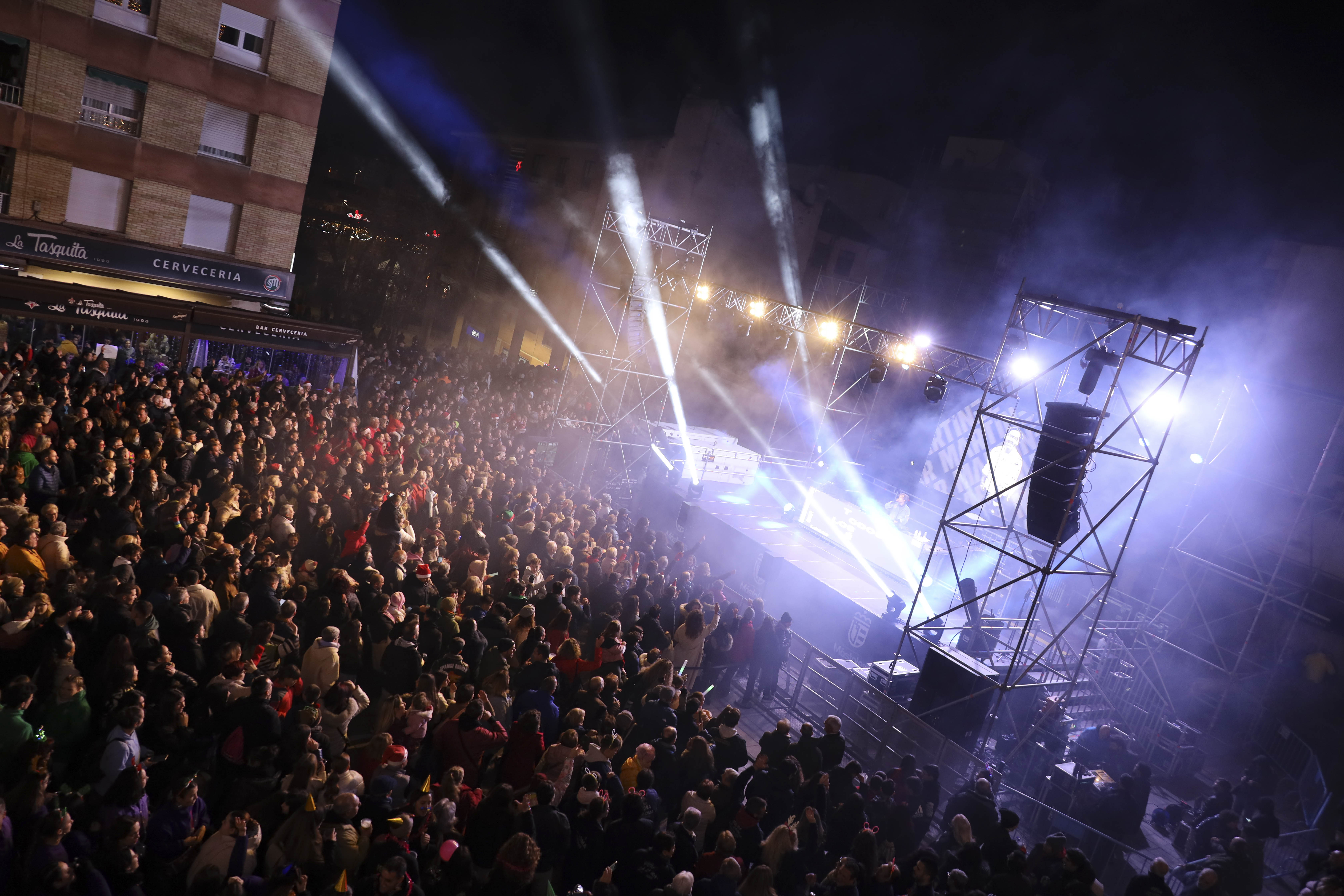 Miles de mostoleños se congregaron el pasado viernes 27 de diciembre en la Plaza de España para despedir el año en las tradicionales preuvas y la fiesta de "Los 40".