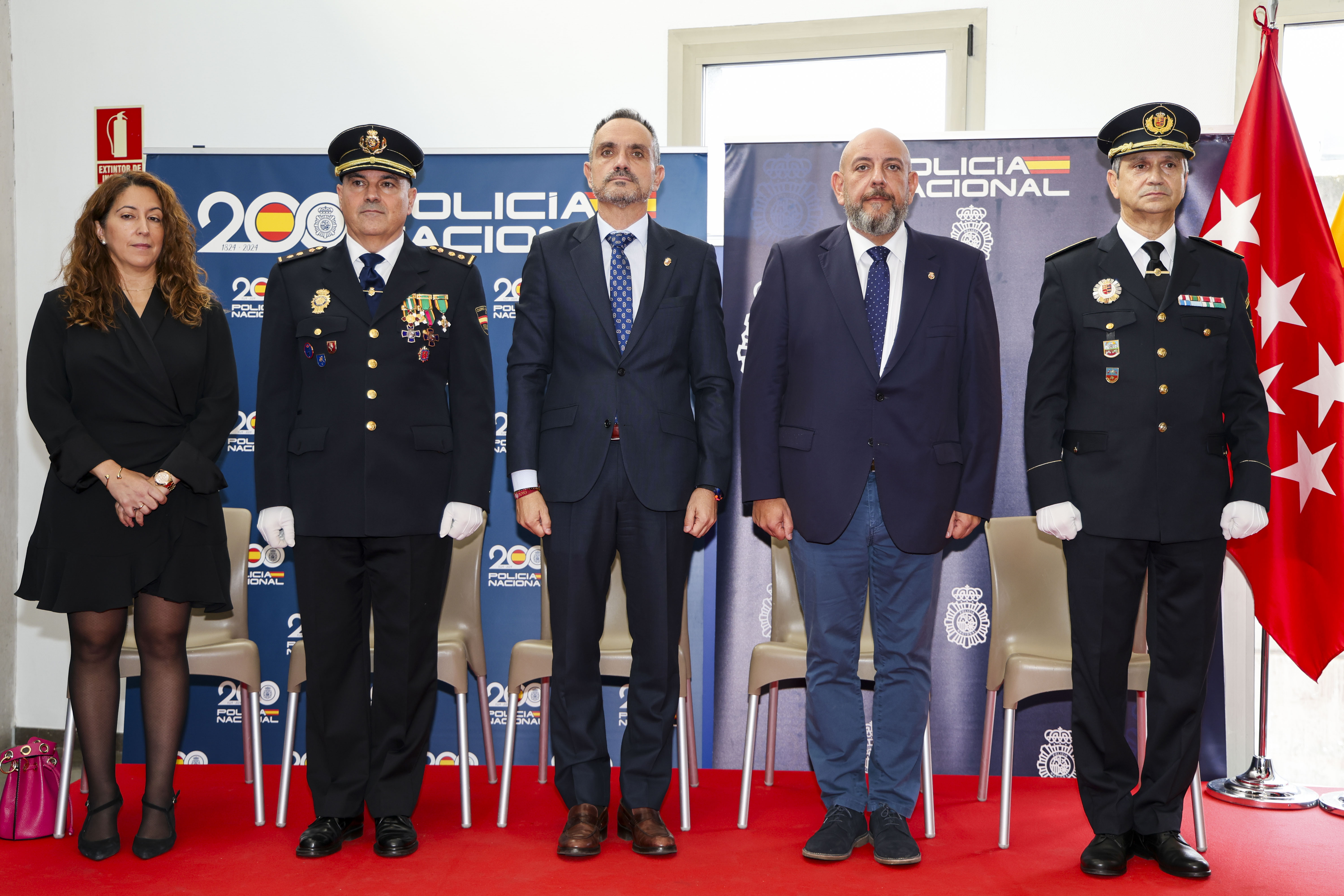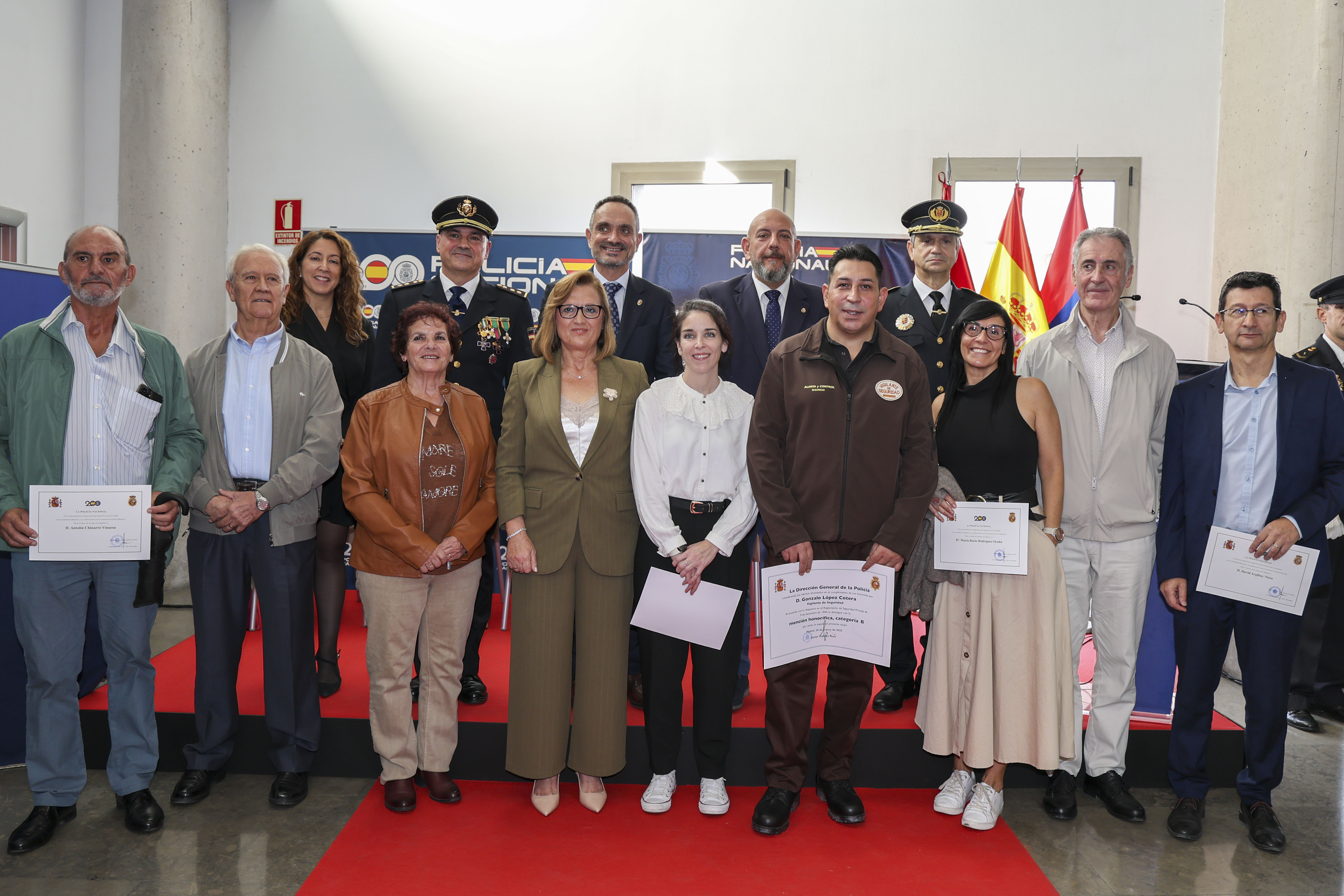 - En el acto, celebrado con motivo de los Santos Ángeles Custodios, patronos de la Policía Nacional, se ha llevado a cabo la entrega de condecoraciones al mérito policial a nueve agentes de la comisaría local, además de diplomas a cuatro agentes jubilados y personal laboral y reconocimientos a cinco ciudadanos ejemplares de Móstoles.